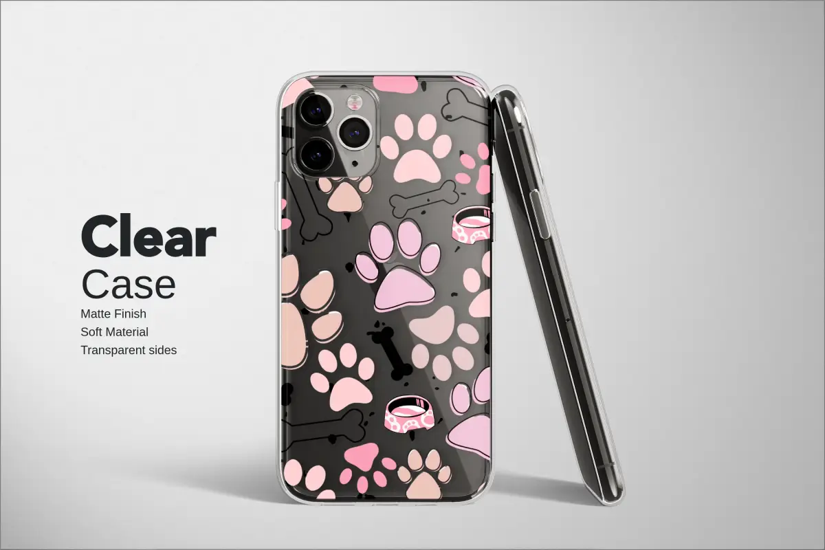 Wrap your most-used accessory in the pure joy and unconditional love of a furry best friend! This charming design is a heartfelt tribute to the pitter-patter of happy paws that greet you at the door, featuring a playful scatter of sweet pink paw prints, whimsical bones, and cute little food bowls. It's more than just a pretty pattern; it’s a constant, cheerful reminder of the slobbery kisses, excited tail wags, and the loyal companion who makes your life whole. Available in two stunning styles—choose a sophisticated deep black background to make the pink pop with modern flair, or a chic clear design that lets your device's own beautiful color peek through. This durable and stylish protective shell is the perfect dog lover gift, a unique piece of art for the dedicated dog mom or fur dad in your life. It’s an everyday celebration of puppy love, designed to keep a piece of your best friend’s spirit with you on all your adventures, safeguarding your tech with a touch of personality and a whole lot of heart. This aesthetic tech accessory isn't just a covering, it's a statement of your puppy passion.