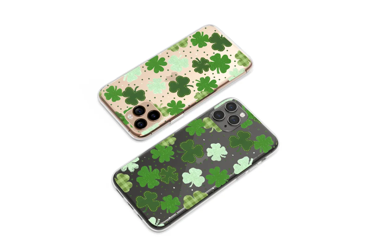Wrap your daily essentials in a field of pure fortune with this enchanting shamrock pattern, designed to bring a touch of luck and handcrafted charm to every moment. Each four-leaf clover is lovingly rendered with a unique, homespun texture that feels both rustic and modern. You'll find clovers with cozy, stitched edges like a favorite quilt, others in a classic green gingham pattern, and some with the soft texture of felt, all scattered like lucky confetti. Floating against a deep, contrasting black background dotted with tiny green sprites, these symbols of good luck seem to dance with cheerful, celebratory energy. This design captures the heart of cottagecore whimsy and rustic elegance, making it a perfect artistic expression for your most-used accessory. It’s an ideal way to honor your Irish heritage, celebrate the spirit of St. Patrick's Day all year round, or simply embrace a vibrant, green aesthetic that brings a smile to your face. Let this beautiful artwork serve as your personal talisman, a constant reminder of hope and good things to come. It makes a thoughtful and unique gift for a friend in need of a little extra luck or a festive treat for yourself, transforming your device into a statement piece of wearable art that's as unique as you are.