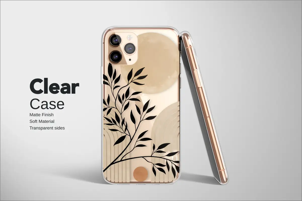 Embrace the quiet elegance of a moonlit garden, captured in a stunning piece of wearable art for your most essential companion. This design whispers of serene nights, where a full golden moon, rich with a subtle, parchment-like texture, hangs in a velvet black sky. Inky botanical silhouettes, like shadows of delicate branches, dance across the scene, their dark forms creating a beautiful contrast against the celestial glow and the clean, modern arches below. These gentle, repeating rainbows add a touch of boho chic and architectural grace, grounding the mystical scene with earthy, Japandi-inspired minimalism. A single, small copper sun rests near the bottom, a final warm touch in the cool, nocturnal landscape. This is more than just a stylish accessory; it’s a pocket-sized sanctuary, a daily reminder to find peace in simplicity and beauty in the abstract. Perfect for the lover of celestial themes, minimalist design, and sophisticated, neutral palettes, it transforms your everyday tech into a unique statement piece. Carry this little world of calm with you, a perfect and thoughtful artsy gift for her or a chic treat for yourself.