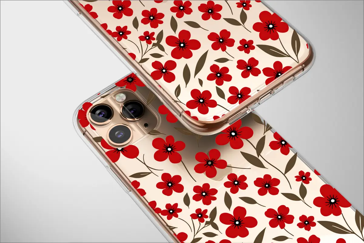 Step into a garden of midnight dreams with this stunning artistic design, where bold crimson blossoms unfurl against an endless black canvas. Each five-petaled flower, a vibrant splash of scarlet with a striking white and black center, seems to dance on delicate, earthy brown stems, creating a mesmerizing pattern that is both modern and timelessly elegant. This captivating floral artwork draws inspiration from minimalist folk art and retro botanical illustrations, offering a sophisticated yet playful aesthetic that makes a confident statement. It’s more than just a pattern; it’s a wearable piece of art that wraps your most essential accessory in a layer of botanical beauty and personal style. Imagine the rich contrast of red and black adding a touch of drama and elegance to your everyday look, a constant reminder of nature's simple, powerful beauty. This durable and stylish piece transforms the ordinary into the extraordinary, making it a perfect treat for yourself or a thoughtful and stylish gift for a loved one who appreciates bold design and floral elegance. Let your style bloom with this unforgettable botanical masterpiece.