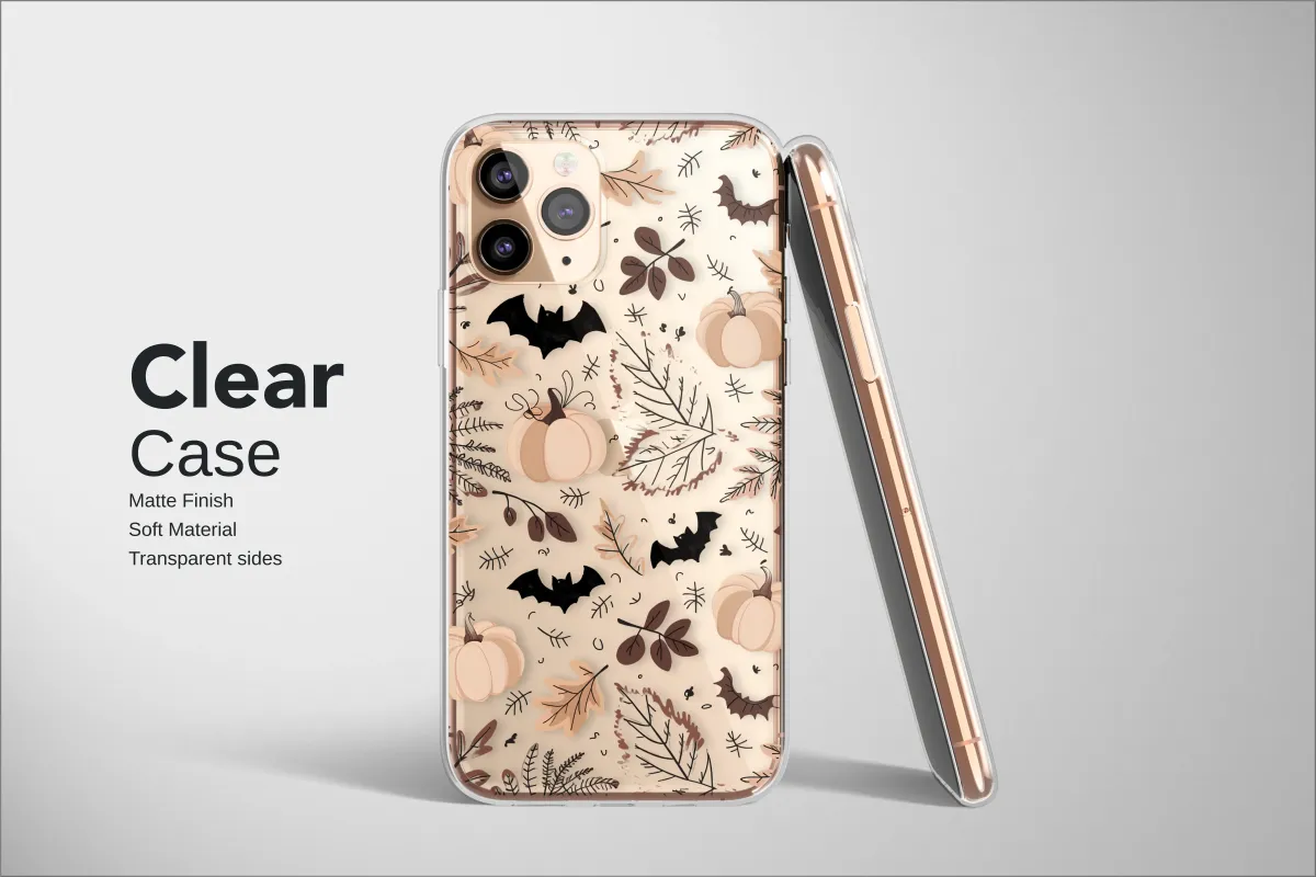 Embrace the enchanting spirit of autumn with this captivating design, capturing the quiet magic of a midnight stroll through a moonlit pumpkin patch. Against a deep, velvety black backdrop, ethereal cream-colored pumpkins nestle among a gentle cascade of falling leaves, creating a stunning visual contrast that is both moody and chic. Each botanical element is rendered in a sophisticated palette of earthy neutrals—rich cocoa, warm taupe, and dusky browns—evoking a sense of rustic warmth and timeless elegance. This isn't just a celebration of harvest; it's a subtle ode to the spooky season, with whimsical bat-shaped leaves fluttering between classic oak and maple silhouettes, adding a touch of elegant goth charm. The design masterfully weaves together the cozy comfort of cottagecore with the moody sophistication of a dark academia aesthetic, making it the perfect artistic statement for your most-used accessory. Imagine the feeling of crisp night air, the scent of fallen leaves, and the soft glow of a distant bonfire, all encapsulated in this beautiful pattern. It’s an essential piece for anyone who lives for sweater weather, finds beauty in nature's quiet moments, and wants to carry a piece of autumnal poetry with them. This unique artwork makes a wonderful gift for her, celebrating the magical transition from fall to Halloween with style.