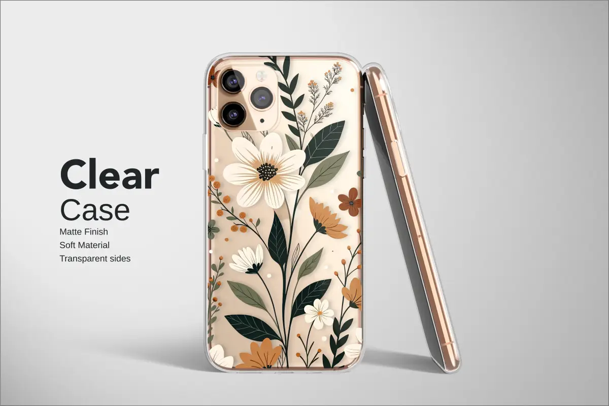 Immerse yourself in the enchanting allure of a midnight meadow with this stunning botanical artwork. This captivating design captures the quiet magic of a wildflower garden under the stars, bringing a touch of nature's untamed elegance to your everyday life. Delicate blossoms in creamy white, warm terracotta, and rich burnt orange bloom vibrantly against a dramatic, deep black canvas, creating a breathtaking contrast that is both moody and sophisticated. Each petal and leaf is intricately detailed with a charming, modern folk-art aesthetic, while sprigs of berries and leaves in muted sage and deep forest green add depth and a wonderfully rustic texture to the composition. This earthy floral pattern is a celebration of organic beauty, perfect for anyone who adores boho style, cottagecore vibes, or simply wants to carry a piece of serene nature with them. Let this moody botanical design transform your most essential accessory into a statement of personal style. It’s the perfect unique gift for the art lover in your life, offering a beautiful way to protect your tech while showcasing a sophisticated, nature-inspired aesthetic that feels both timeless and contemporary.