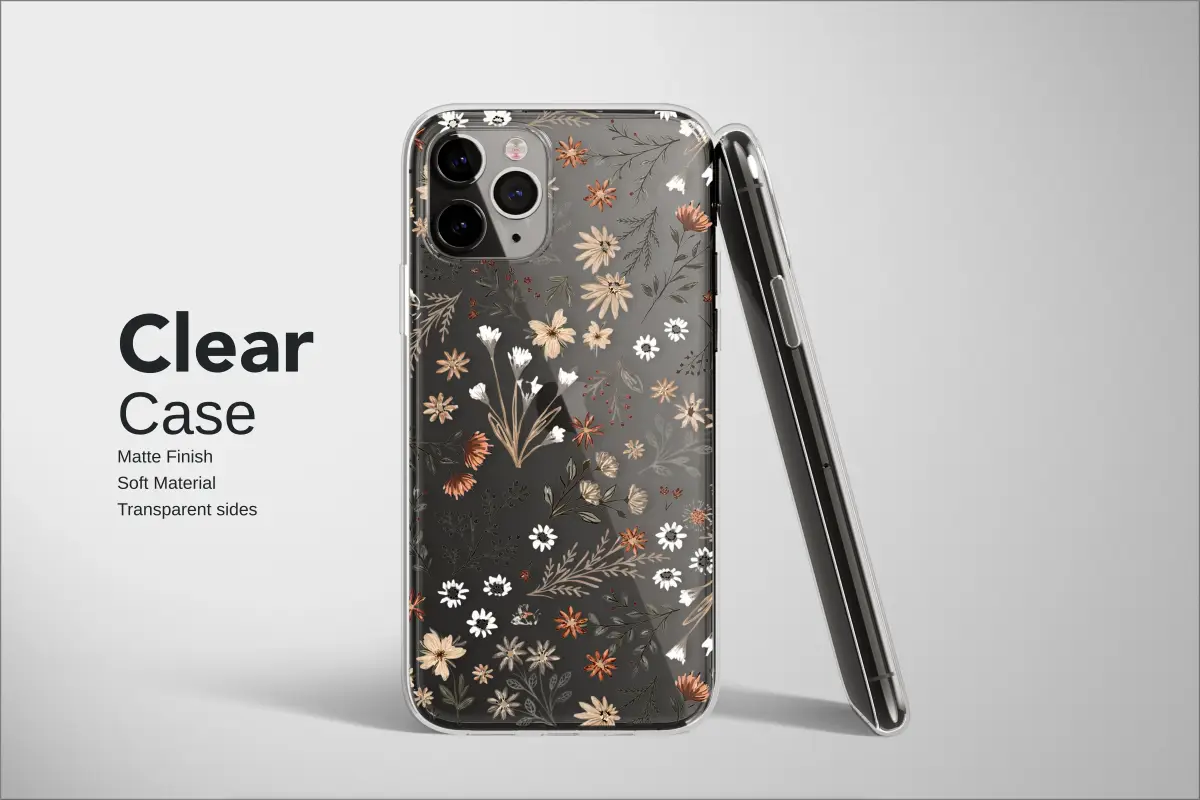 Wander through a moonlit meadow every time you glance at this enchanting botanical design. Set against a deep, dramatic black canvas that evokes a midnight sky, a delicate tapestry of wildflowers unfolds in a symphony of warm, earthy tones. Imagine rustic blossoms and stylized daisies in rich terracotta, creamy beige, and gentle sage green, each petal and leaf rendered with an artistic, almost watercolored, handcrafted feel. This is where modern boho meets timeless cottagecore, creating a moody floral masterpiece. It’s a story of nature's quiet elegance, a dark academia aesthetic infused with the untamed spirit of the wild. Unique horizontal elements add a contemporary, slightly glitched twist, like a cherished vintage textile artfully reimagined. This stunning floral pattern is perfect for the free spirit, the romantic, and the lover of all things beautiful and unique. Adorn your daily essentials with this piece of art and carry a secret garden with you wherever you go. It transforms your favorite accessory into a personal statement of style and a constant reminder of nature's wild, serene beauty. A truly perfect gift for the art aficionado or a special treat to infuse your everyday with a dose of rustic charm and sophisticated, nature-inspired elegance.