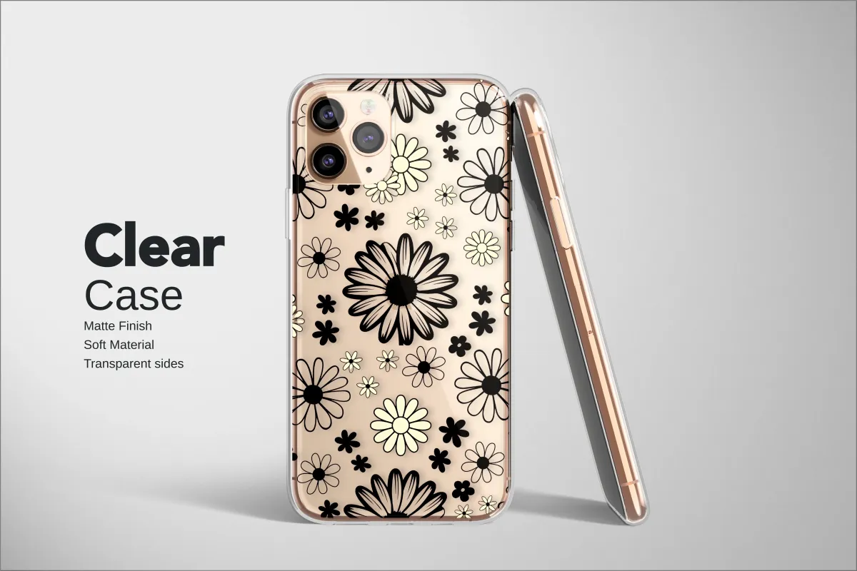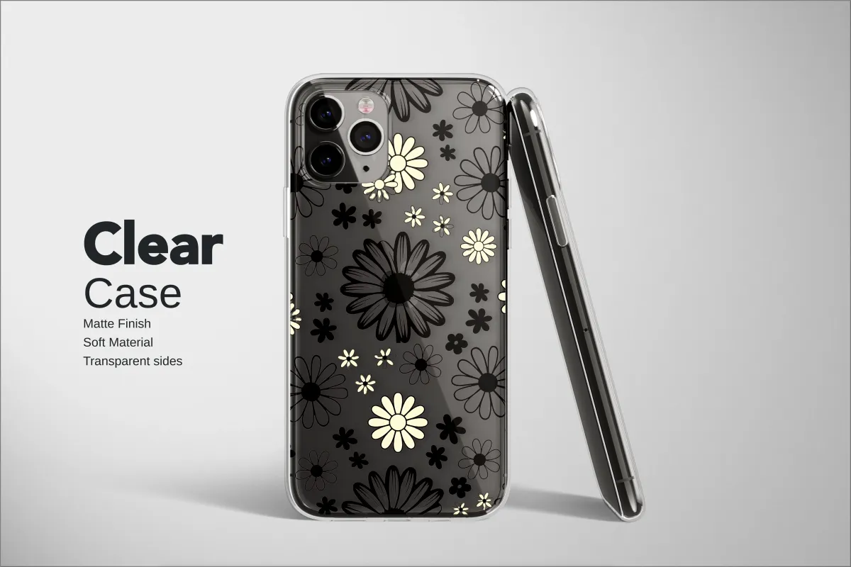 Embrace your inner flower child and wrap your favorite device in a groovy, 70s-inspired daydream. This stunning retro floral design is a walk through a whimsical midnight garden, where cheerful daisies bloom in the dark. Set against a deep, inky black canvas, the pattern comes alive with a beautiful contrast of solid creamy ivory petals and delicate, blush-pink outlines that give the blossoms an artistic, hand-drawn glow. It’s the perfect blend of moody floral and hippie chic, a unique tech accessory for the vintage soul with a modern edge. Let this charming wildflower pattern give your daily companion a complete personality makeover, turning it into a piece of wearable art that expresses your indie spirit. It's more than just a protective layer for your gadget; it’s a statement, a mood, and a conversation starter. This botanical design makes a fabulous gift for her, a thoughtful present for your best friend, or a special treat for yourself to add a pop of Y2K-meets-flower-power style to your everyday carry. Let your tech reflect your artistic taste and keep the good vibes flowing with this unforgettable, retro-cool design that's as unique and stylish as you are.