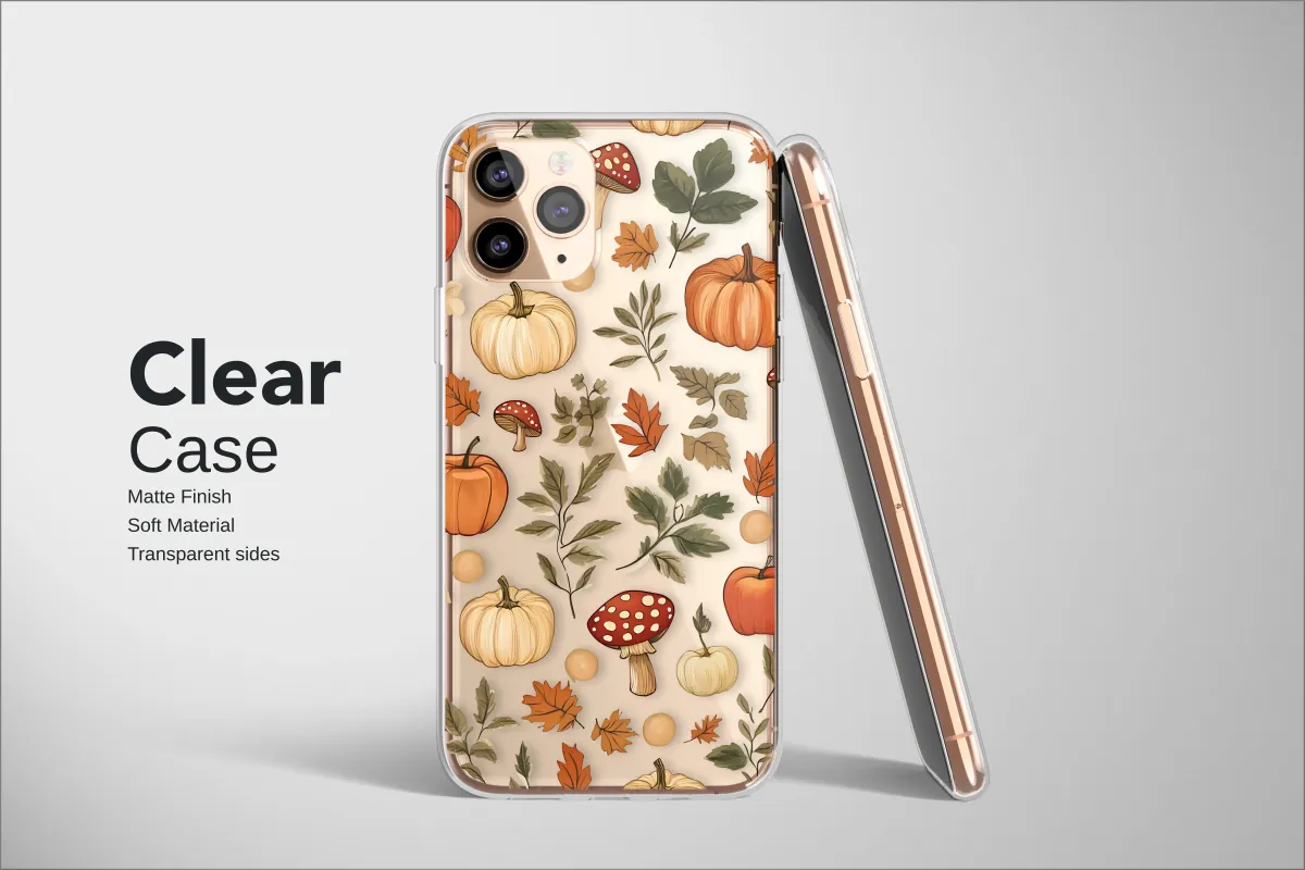 Wander into an enchanted forest at twilight with this captivating autumn harvest design. Set against a deep, moody black backdrop, a delightful scene of the season's best unfolds. Plump pumpkins in warm cream and vibrant jack-o'-lantern orange nestle amongst a scatter of rust-colored fall leaves and delicate green botanicals. Look closer and you’ll discover whimsical, fairytale toadstools with their iconic red caps and white spots, adding a touch of magical cottagecore charm to the woodland tableau. This isn't just a pattern; it’s an entire autumn aesthetic captured in a single, beautiful illustration. It evokes the feeling of crisp air, the scent of earth after rain, and the cozy comfort of spooky season stories by a crackling fire. Perfect for lovers of dark academia, forestcore vibes, and anyone who wishes autumn could last forever. Let this intricate design transform your everyday essential into a piece of wearable art, a personal totem that carries the quiet magic and rich, warm palette of the fall harvest with you wherever you go. It’s a celebration of nature's beauty, perfect for pumpkin spice season and beyond.