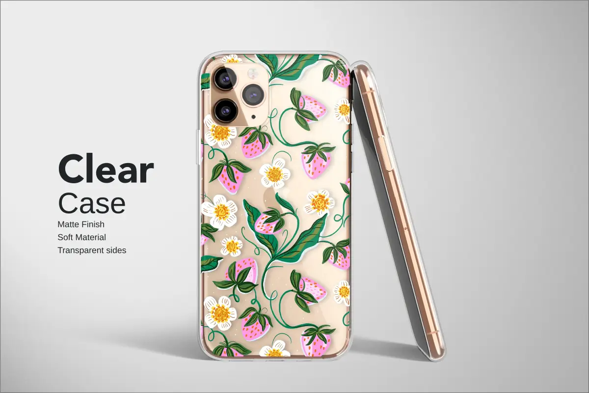 Step into a whimsical midnight garden where summer never ends with this enchanting botanical design. Imagine plump, rosy-pink strawberries, sweet and sun-kissed, scattered amongst delicate white blossoms that pop against a mysterious, dark canvas. Each berry and flower is rendered in a charming, painterly style, evoking the rustic allure of cottagecore dreams and whimsical folk art tales. Deep emerald green leaves and playful, curling vines twist and turn in a captivating dance, creating a beautiful contrast that brings the magic of a secret strawberry patch to your everyday life. This nature-inspired artwork is more than just a pattern; it’s an emotion—a burst of playful joy, the sweet nostalgia of a perfect summer day, and a touch of artistic flair. It’s the perfect unique gift for the gardener, the art lover, the dreamer, or anyone who appreciates a touch of feminine charm in their accessories. Let this delightful fruit and floral illustration transform your daily essential into a vibrant statement piece, adding a pop of personality that is as sweet and unique as you are.