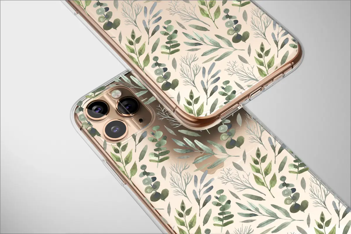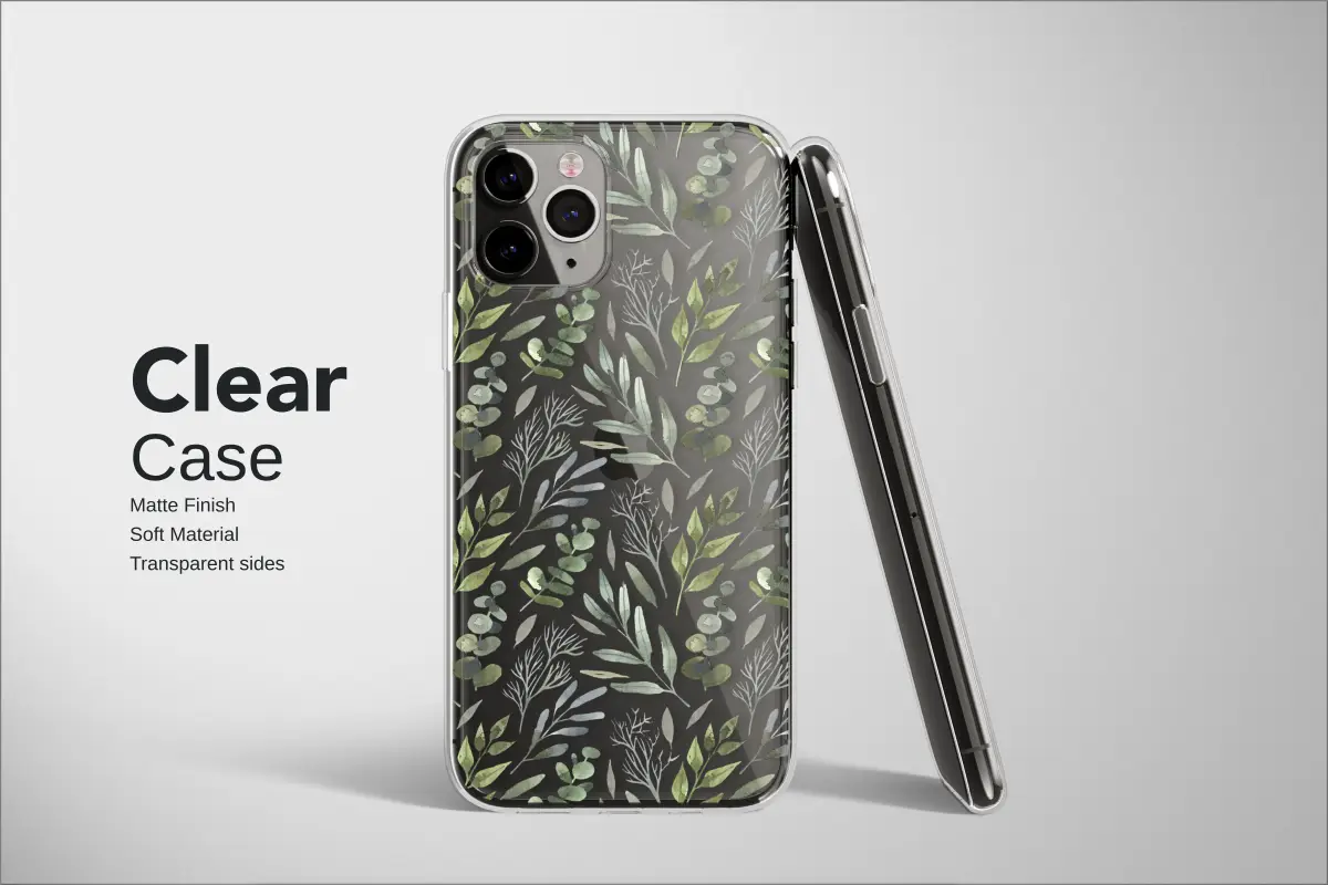Immerse yourself in the quiet beauty of a twilight garden with this captivating botanical design. Delicate watercolor leaves in shades of soft sage, deep olive, and dusty silver-green float across a dramatic black canvas, creating a sense of serene, moody elegance. Each sprig of eucalyptus and gentle fern is rendered with an artist’s touch, capturing the organic imperfection of nature. A subtle, modern abstract glitch effect weaves through the foliage, adding a contemporary twist to the timeless botanical pattern. This design is more than just an accessory; it's a piece of wearable art that whispers tales of tranquil forests and hidden meadows. Perfect for the nature lover, the modern romantic, or anyone who appreciates the subtle artistry in everyday objects. Let this enchanting greenery print bring a touch of sophisticated, earthy charm to your daily essentials, a constant reminder of nature's peaceful and enduring grace. It’s the ideal gift for a friend with a cottagecore heart or a beautiful treat for yourself to elevate your personal style with a unique, artistic statement.