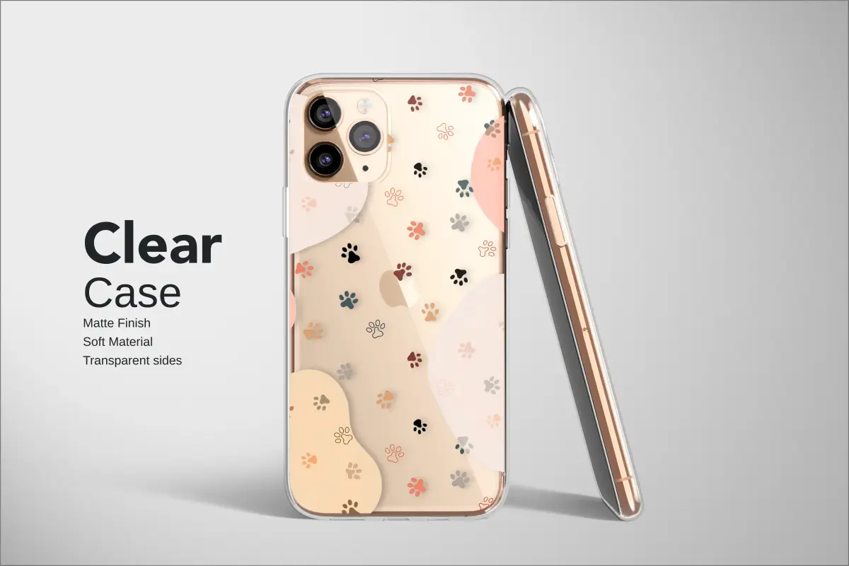 Celebrate the beautiful chaos and unconditional love of your furry friend with this captivating artistic design. Let every glance at your device be a reminder of the tiny footprints they leave on your heart. Set against a deep, dramatic black canvas, soft pastel clouds in blush pink, warm cream, and gentle beige create a dreamy, abstract landscape. A whimsical journey unfolds across this scene, with a playful scattering of paw prints in a symphony of colors and styles—from solid earthy tones to delicate outlines and modern, pixelated glitches. Thin, crisp lines slice through the composition, adding a contemporary edge to the heartwarming theme. This unique artwork is more than just a pattern; it's an expression of the joy, companionship, and endless affection our pets bring into our lives. Perfect for the modern dog mom, proud cat dad, or any animal enthusiast, this design allows you to carry a stylish token of your four-legged family member wherever you go. It’s a sophisticated, artful tribute to the paws that walk alongside you, a perfect blend of boho chic and modern aesthetics to personalize your most essential accessory.