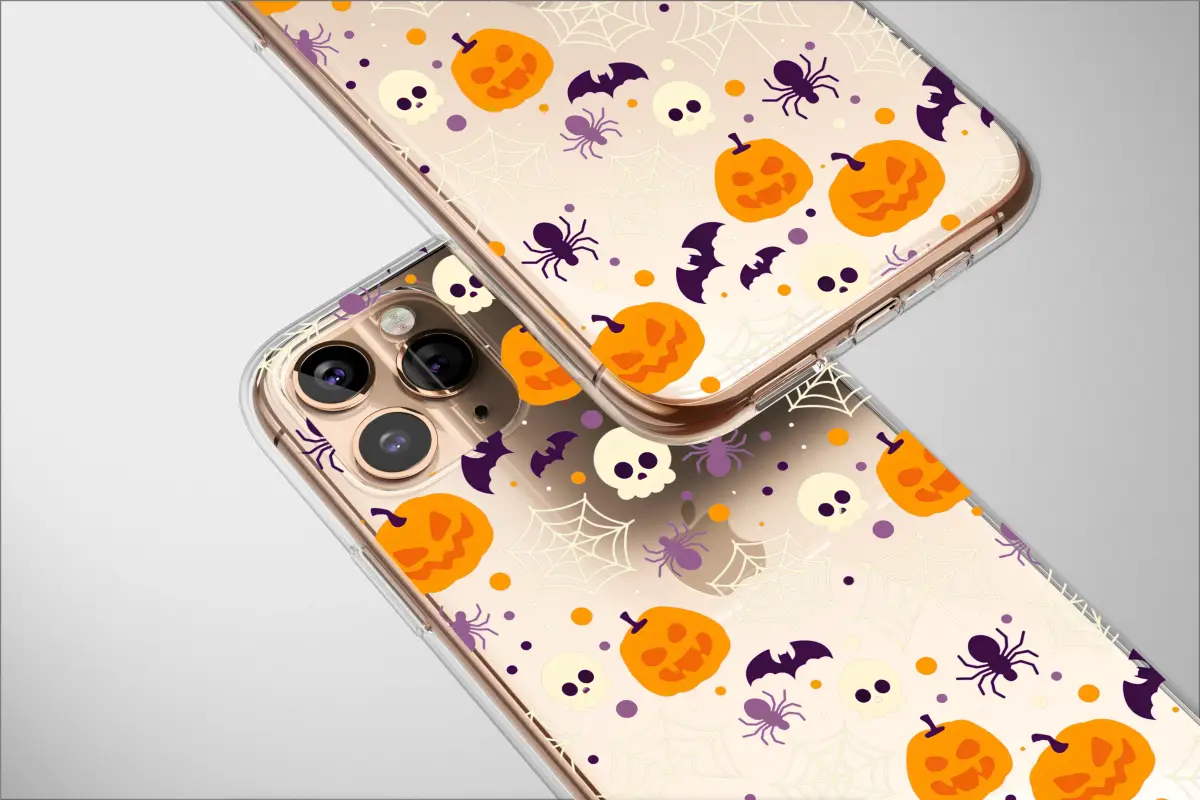 Step into a world of nostalgic fright and delight with this captivating pixel art design, a perfect tribute to the most magical time of the year. Every glance reveals a new detail in this retro-inspired Halloween tapestry. Mischievous jack-o'-lanterns cast a warm, orange glow against the deep midnight black, their pixelated grins promising festive fun. They share the night with charmingly spooky skulls, intricate spiderwebs that glisten under a digital moon, and playful purple spiders ready to drop in. Look closer, and you'll see silhouetted bats taking flight, completing this enchanting 8-bit scene. This design isn't just an accessory; it's a pocketful of autumn magic, blending a love for all things spooky with a cool, vintage video game aesthetic. It’s the perfect way to carry the spirit of Halloween with you, a unique piece of art for the modern ghoul who appreciates a touch of gothic charm and a whole lot of personality. Let this creepy-cute pattern transform your everyday essentials into a celebration of the spooky season, making every day feel like All Hallows' Eve.