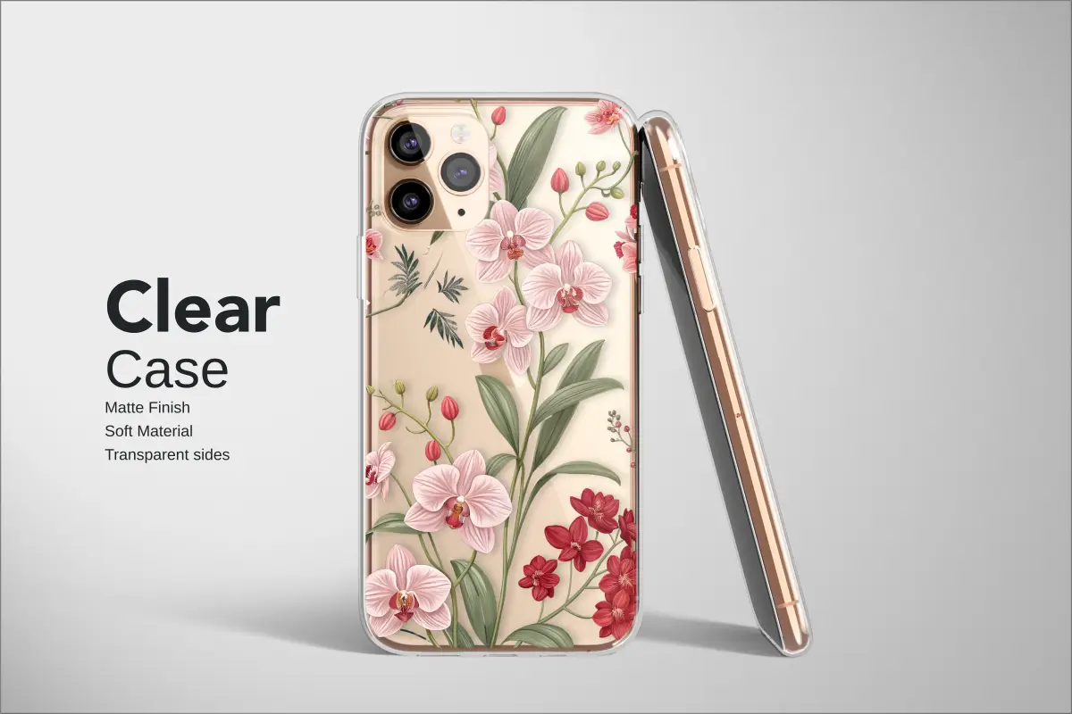 Immerse yourself in the quiet elegance of a midnight garden, where delicate orchids unfurl their petals in the soft glow of moonlight. This exquisite botanical design captures a moment of serene beauty, a timeless dance of nature's finest artistry against an inky black backdrop. Each flower is rendered with breathtaking detail, from the soft, blush pink and creamy whites of the majestic Phalaenopsis orchids to the vibrant, passionate crimson of the smaller accent blossoms. Lush, verdant leaves and tender, unopened buds weave through the composition, creating a sense of organic depth and perpetual life. This stunning visual contrast evokes a feeling of romantic mystery and sophisticated charm, reminiscent of a classic Dutch still life painting. This vintage-inspired floral illustration is more than just a pattern; it's a portable piece of art that speaks to a love for dark academia aesthetics, classic beauty, and the untamed elegance of the natural world. It allows you to carry a fragment of a secret garden, transforming your most essential accessory into a unique statement of personal style. Let this enchanting floral artwork bring a touch of grace and poetry to your daily life, making it an ideal gift for the nature lover, the art enthusiast, or anyone looking to carry a little piece of a blooming world with them wherever they go.