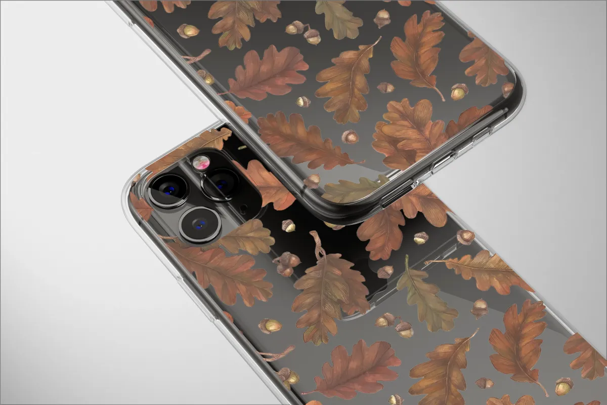 Immerse yourself in the quiet magic of an autumn forest floor with this enchanting artwork, designed to bring a touch of woodland serenity to your most essential accessory. This captivating design features a beautiful cascade of intricately hand-painted oak leaves and tiny, perfect acorns, each rendered in exquisite, painterly detail and scattered artfully against a dramatic, deep black backdrop. The rich, earthy color palette—a symphony of deep umbers, rustic siennas, warm ochres, and gentle olive greens—evokes the profound, soul-soothing feeling of a crisp walk through the woods on a golden afternoon. You can almost hear the gentle crunch of fallen leaves underfoot and feel the cool, refreshing air on your skin. This artwork is a timeless celebration of nature's simple, enduring beauty, making it a perfect accent for the modern romantic, the dedicated woodland wanderer, or anyone with a heart for the cozy nostalgia of cottagecore and the intellectual charm of dark academia aesthetics. It's more than just a pattern; it's a portable piece of the serene wilderness, a daily, tangible reminder of the cyclical beauty of the changing seasons and the ancient, enduring strength of the mighty oak. Let this stunning botanical masterpiece bring a touch of rustic elegance and comforting charm to your everyday carry. It's a thoughtful and unique gift for the nature lover in your life or a special seasonal treat to cherish for yourself. Carry a fragment of the enchanted forest with you, wherever your daily adventures may lead.