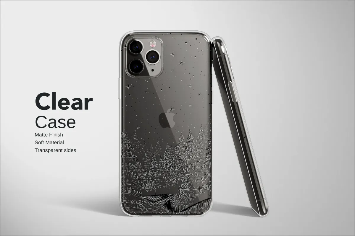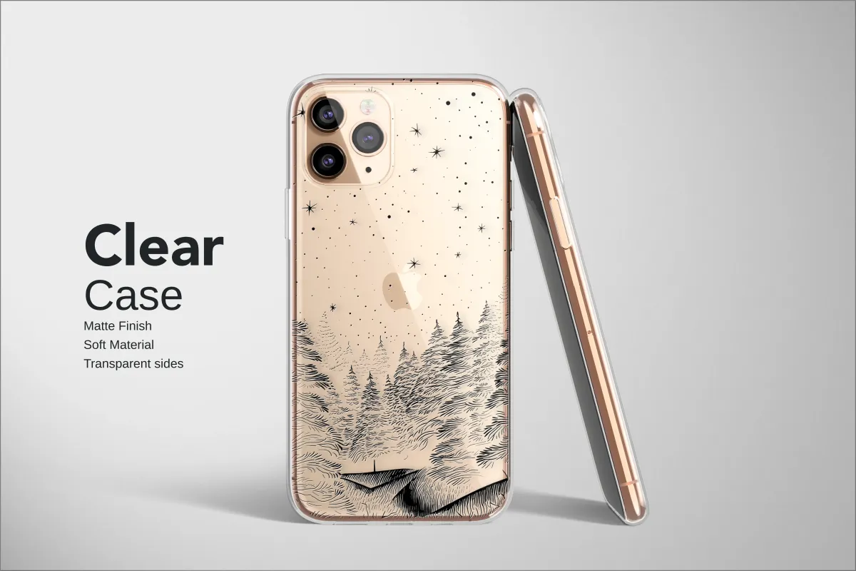 Step into the quiet magic of a silent, starlit winter's night, where a dense forest of whispering pines rests under a vast, celestial sky. This stunning black and white illustration captures the serene beauty of a remote woodland landscape, rendered in a captivating, textural style reminiscent of a classic woodcut or etching. Each wavy line and intricate detail brings the scene to life, from the gentle sway of the evergreen branches to the scattered stardust and bold constellations twinkling above. The high-contrast monochrome design offers a timeless, minimalist aesthetic that speaks to the soul of every nature lover and dreamer. It’s an invitation to pause and breathe in the crisp, cool air of a midnight adventure, carrying a piece of the wild, untamed beauty of the cosmos with you. Perfect for anyone who finds peace in the mountains or feels a connection to the stars, this design transforms your everyday essential into a unique piece of art. Let this enchanting forest scene be a daily reminder of the quiet wonder that exists just beyond the treeline.