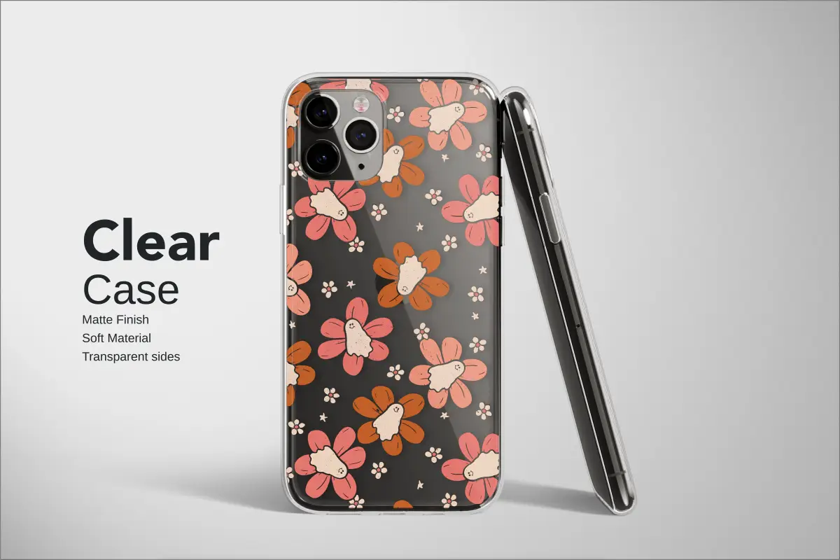 Step into a whimsical midnight garden where spooky-cute charm blossoms after dark! Our "Groovy Ghost Garden" design is a playful dreamscape, capturing a dance of friendly little spirits nestled amongst 70s-inspired flowers. Each smiling ghost, crafted with a soft, vintage texture, finds a cozy home atop petals of warm terracotta, burnt orange, and dusty rose, all set against a dreamy, starlit black canvas. This unique artwork is imbued with a nostalgic, well-loved feel, like a treasured find from a bohemian flea market. It's more than just a pattern; it’s a mood, perfect for the free spirit who finds joy in the quirky and magical, blending a love for retro aesthetics with a touch of gentle Halloween spookiness. Let this enchanting, artistic shield wrap around your most essential daily companion, keeping it safe while showcasing your wonderfully whimsical style. A perfect gift for the retro-loving, ghost-hunting soul in your life, this accessory brings a pop of dark cottagecore and hippie magic to your everyday carry. Embrace the spooky season all year long and carry a little haunted flower patch wherever you go, turning your daily tech into a piece of enchanting art.