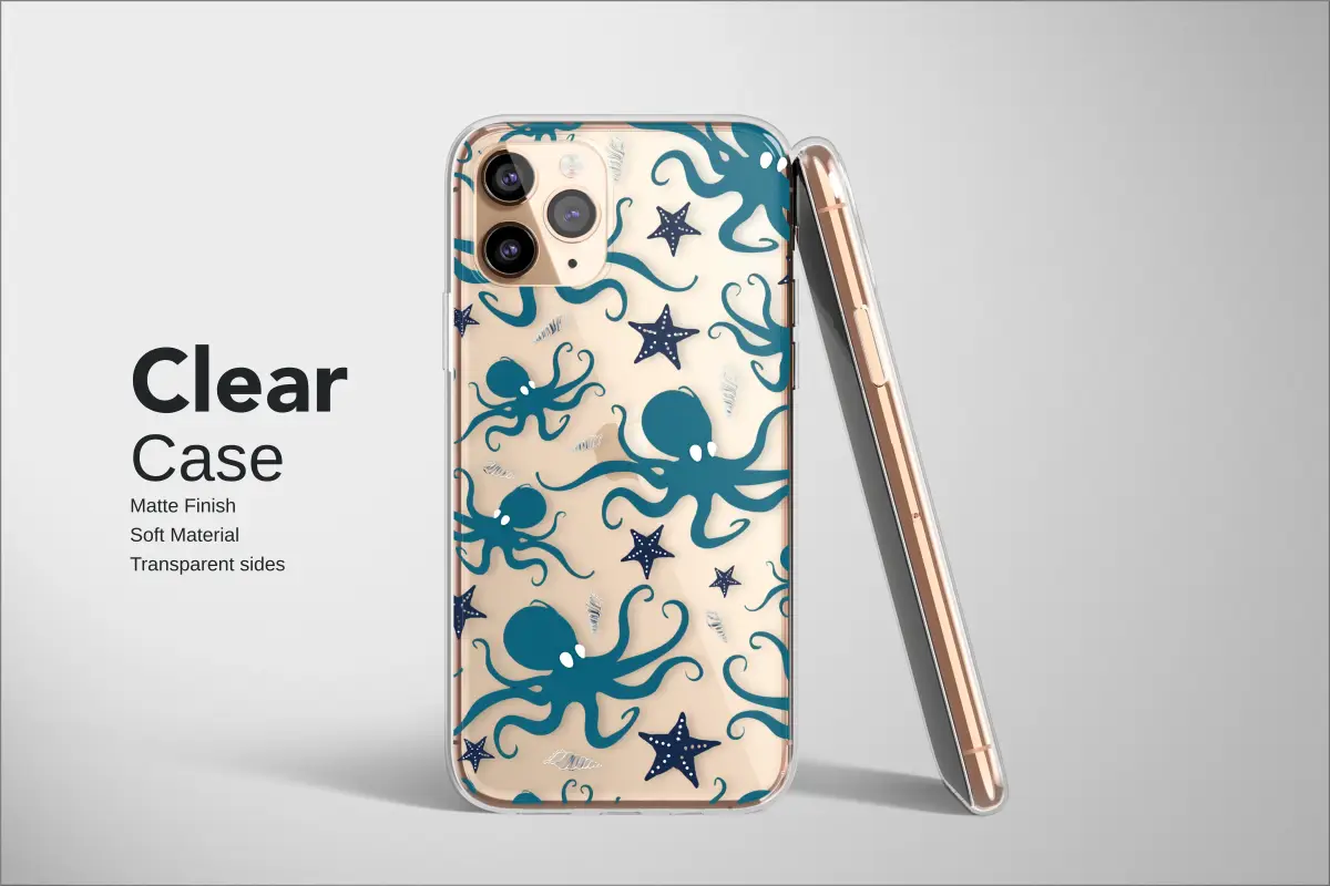 Immerse yourself in the enchanting mystery of the midnight ocean with this captivating artwork, a design that pulls you into the serene depths of the sea. Picture a world cloaked in an inky black void, where graceful teal octopuses perform an elegant, silent ballet. Their tentacles curl and swirl with a mesmerizing fluidity, weaving a continuous pattern of life and hypnotic movement across the profound darkness. This is a scene of tranquil wonder, a snapshot of the hidden life that thrives far below the surface. Scattered amongst these intelligent creatures, deep blue starfish glimmer like fallen constellations, their pearlescent dots adding a touch of celestial magic to the underwater galaxy. Delicate, spiraling seashells drift peacefully in the gentle currents, each one a tiny, intricate treasure whispering tales of ancient tides and sandy floors. This design is more than just a pattern; it’s an escape to a hidden world, a tangible piece of the ocean's soul you can carry with you. Created for the dreamer, the marine biologist at heart, or anyone who finds profound beauty in the deep, this artwork wraps your most-used items in a layer of sophisticated, nautical elegance and whimsical charm. Let the tranquil yet powerful energy of the abyssal plain accompany you, transforming your daily essentials into a statement of your love for the wild, untamed heart of the ocean.