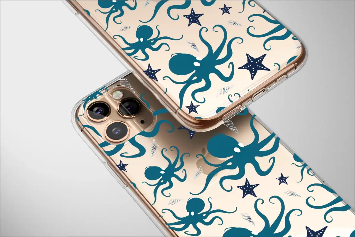 Immerse yourself in the enchanting mystery of the midnight ocean with this captivating artwork, a design that pulls you into the serene depths of the sea. Picture a world cloaked in an inky black void, where graceful teal octopuses perform an elegant, silent ballet. Their tentacles curl and swirl with a mesmerizing fluidity, weaving a continuous pattern of life and hypnotic movement across the profound darkness. This is a scene of tranquil wonder, a snapshot of the hidden life that thrives far below the surface. Scattered amongst these intelligent creatures, deep blue starfish glimmer like fallen constellations, their pearlescent dots adding a touch of celestial magic to the underwater galaxy. Delicate, spiraling seashells drift peacefully in the gentle currents, each one a tiny, intricate treasure whispering tales of ancient tides and sandy floors. This design is more than just a pattern; it’s an escape to a hidden world, a tangible piece of the ocean's soul you can carry with you. Created for the dreamer, the marine biologist at heart, or anyone who finds profound beauty in the deep, this artwork wraps your most-used items in a layer of sophisticated, nautical elegance and whimsical charm. Let the tranquil yet powerful energy of the abyssal plain accompany you, transforming your daily essentials into a statement of your love for the wild, untamed heart of the ocean.