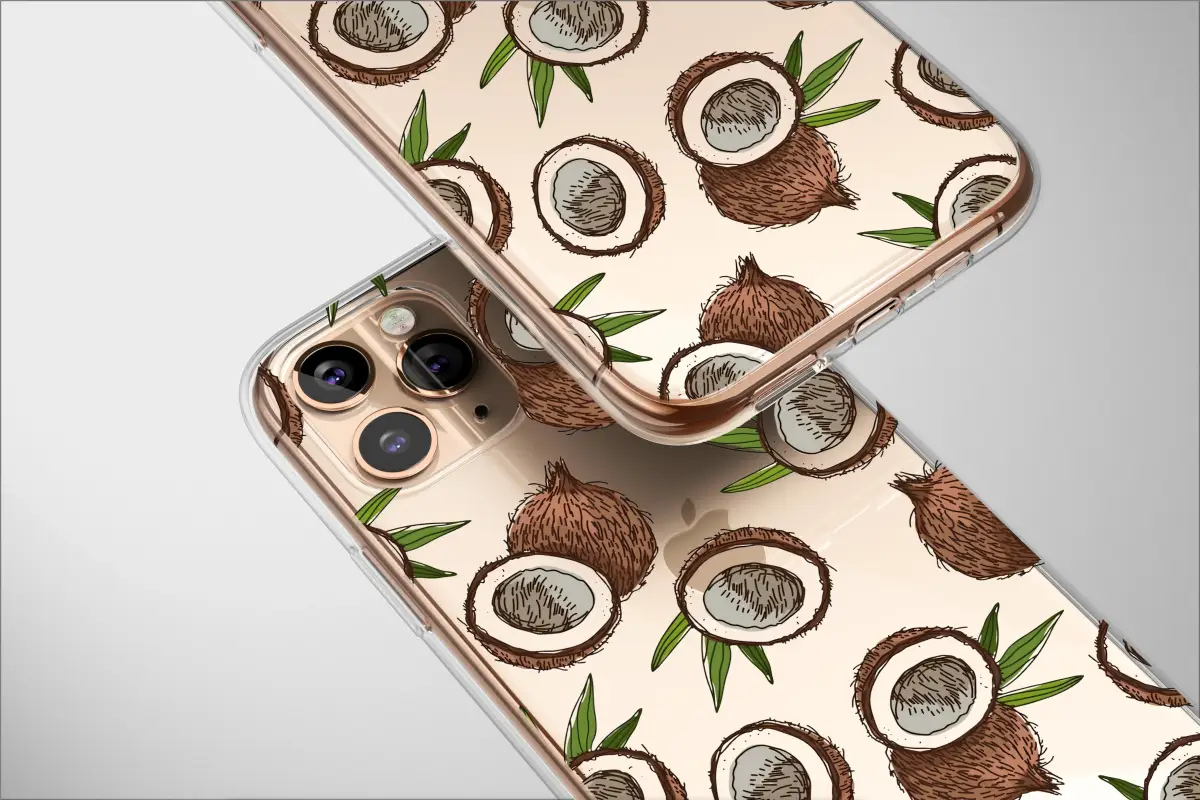 Escape to your own private, sun-drenched paradise with every glance at this beautifully rustic design. Immerse yourself in the feeling of warm sand between your toes and the gentle rustle of palm leaves overhead, a tropical fantasy captured in this unique botanical pattern. Each coconut is meticulously rendered with a charming, hand-drawn quality, celebrating the intricate, fibrous texture of the brown husk and the creamy, inviting white of the fruit within. These earthy elements are artfully scattered against a dramatically contrasting, deep black backdrop, creating a bold and sophisticated visual statement. Sprinkles of vibrant green leaves weave through the composition, adding a fresh, lively touch that makes the organic tones pop with natural energy. This artwork is more than just a pattern; it's an emotion—a daily dose of wanderlust and a reminder of warm beaches, idyllic island getaways, and the simple, profound beauty of nature. Perfect for the eternal dreamer, the passionate traveler, or anyone looking to carry a piece of tropical serenity with them, this design infuses an effortlessly chic, bohemian vibe into your most-used accessories. Let it be your stylish statement piece that speaks to a love for organic aesthetics and a life filled with sun-soaked adventures.