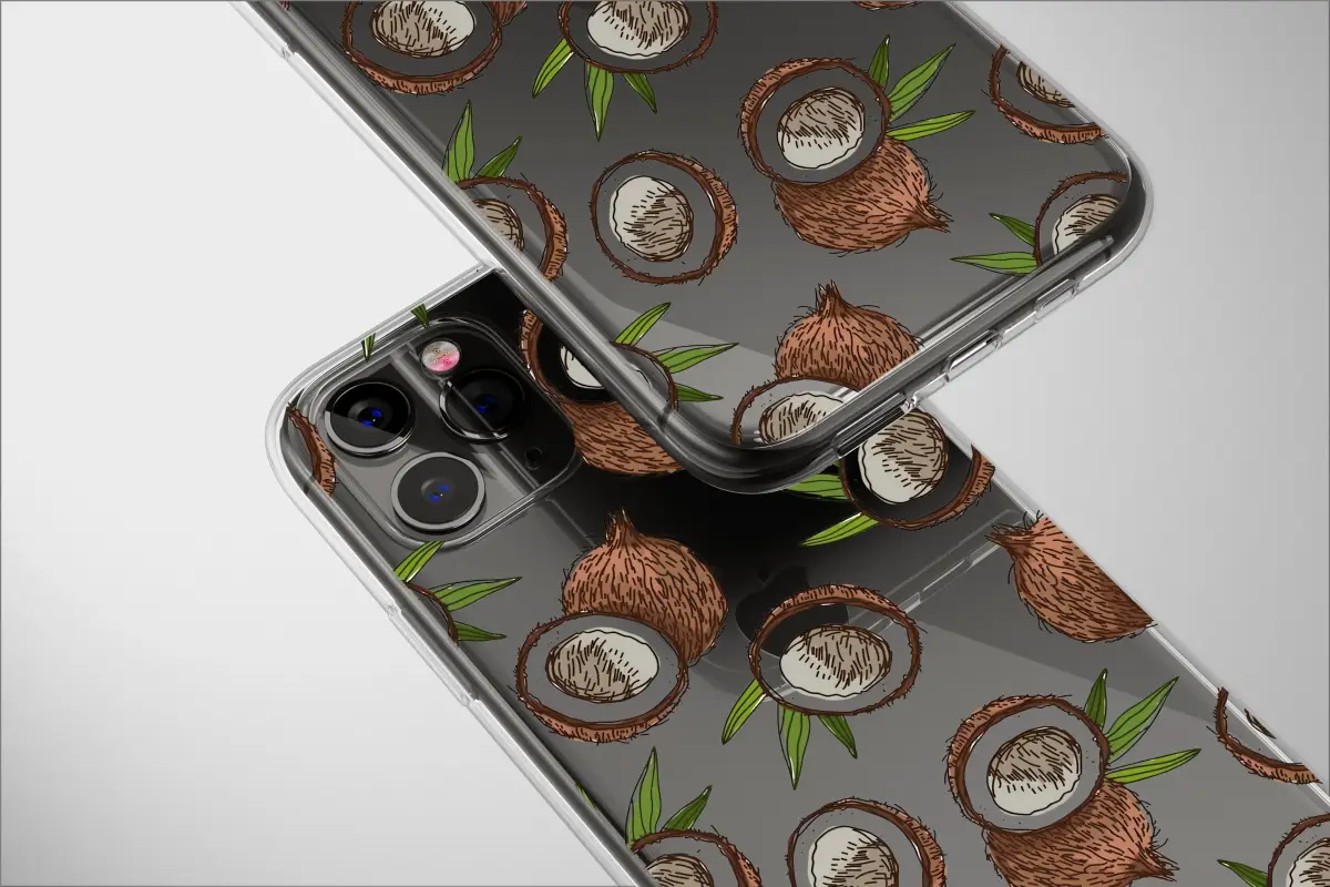 Escape to your own private, sun-drenched paradise with every glance at this beautifully rustic design. Immerse yourself in the feeling of warm sand between your toes and the gentle rustle of palm leaves overhead, a tropical fantasy captured in this unique botanical pattern. Each coconut is meticulously rendered with a charming, hand-drawn quality, celebrating the intricate, fibrous texture of the brown husk and the creamy, inviting white of the fruit within. These earthy elements are artfully scattered against a dramatically contrasting, deep black backdrop, creating a bold and sophisticated visual statement. Sprinkles of vibrant green leaves weave through the composition, adding a fresh, lively touch that makes the organic tones pop with natural energy. This artwork is more than just a pattern; it's an emotion—a daily dose of wanderlust and a reminder of warm beaches, idyllic island getaways, and the simple, profound beauty of nature. Perfect for the eternal dreamer, the passionate traveler, or anyone looking to carry a piece of tropical serenity with them, this design infuses an effortlessly chic, bohemian vibe into your most-used accessories. Let it be your stylish statement piece that speaks to a love for organic aesthetics and a life filled with sun-soaked adventures.