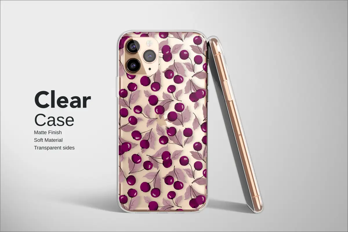 Step into an enchanted orchard at dusk with this captivating botanical design. Imagine luscious, deep magenta and plum-colored cherries, glowing like tiny, precious jewels against an inky black canvas. Each berry is rendered with a painterly, artistic touch, their plump forms highlighted with a subtle sheen of light, suggesting a recent twilight rain or a touch of morning dew. They cascade and float across the surface in a graceful, scattered pattern, nestled amongst ethereal leaves painted in soft, dusty rose and muted mauve tones, creating a beautiful, sophisticated contrast that is both moody and deeply romantic. The artwork feels like a secret garden discovered after dark, a modern interpretation of classic fruit illustrations infused with a hint of art nouveau elegance and a subtle y2k flair. It’s the perfect accessory for anyone who adores a dark cottagecore aesthetic, a sophisticated botanical print, or simply wants to carry a piece of mysterious, natural beauty with them every day. Let this stunning fruit pattern wrap your essential tech in the rich, velvety embrace of a midnight harvest, adding an artistic and chic statement to your personal style. This design isn't just a pattern; it's a mood, an escape into a beautifully dark fairy tale, making it a truly unique and thoughtful gift for the nature lover with a flair for the dramatic.