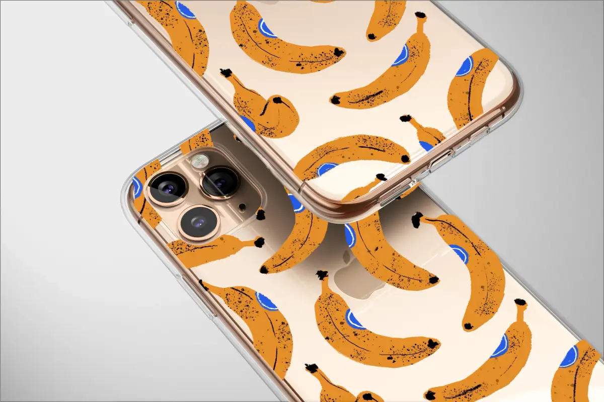 Unleash a burst of playful energy with this striking design that reimagines a pop art icon through a modern, digital lens. A vibrant cascade of golden-yellow bananas, each sporting a bold cobalt blue sticker, tumbles across a dynamic, glitch-art background. The speckled, textured details on each fruit add a rustic, hand-drawn feel, creating a stunning contrast with the sharp, pixelated horizontal lines that slice through the scene. It’s a captivating dance between the familiar and the abstract, the retro and the futuristic. This artwork is more than just a pattern; it's a statement of bold personality and a celebration of the unconventional. Perfect for adding a splash of dopamine to your daily essentials, this vibrant piece transforms your most-used accessory into a walking gallery piece. It’s designed for the trendsetter, the art enthusiast, and anyone who isn't afraid to stand out. Let this unique, artist-created design express your creative spirit and bring a touch of unexpected joy and conversation to your everyday life.