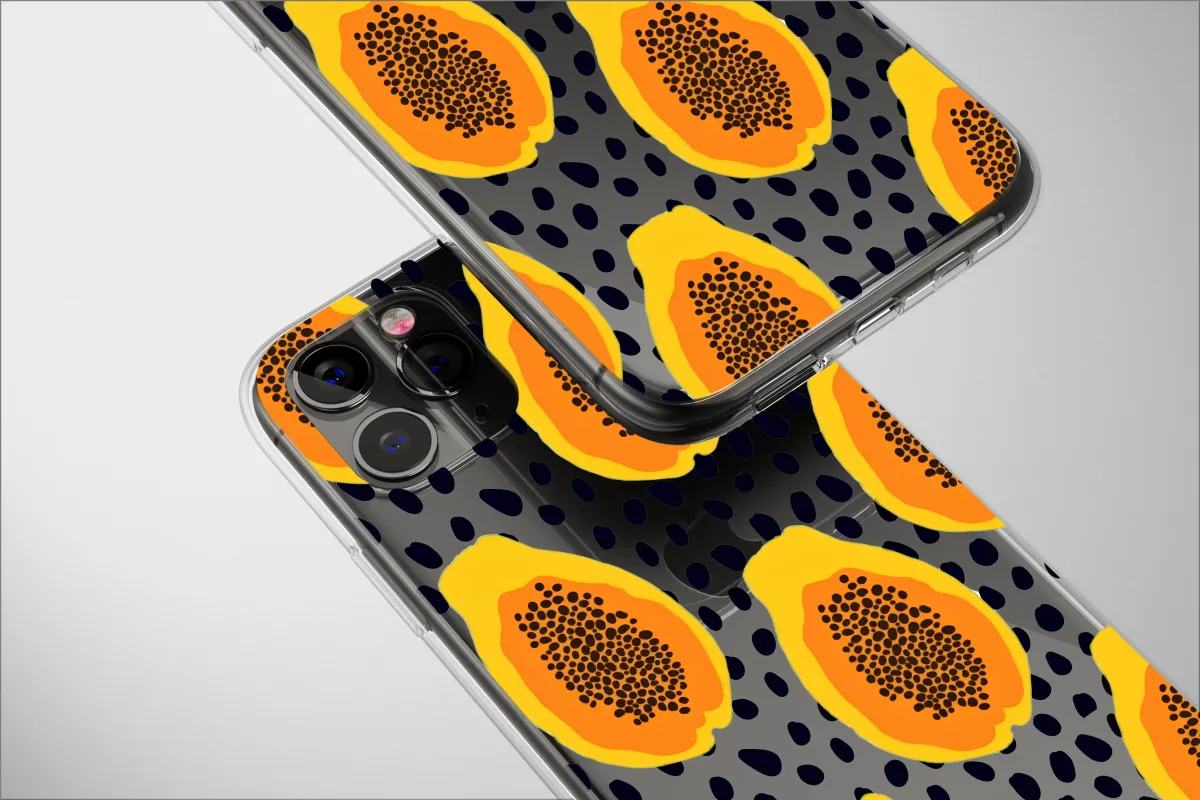 Escape to a sun-drenched paradise with this electrifying artwork, a vibrant celebration of pure tropical energy. Imagine slicing into a perfectly ripe papaya on a humid afternoon, its juicy, sunset-orange flesh bursting with mouthwatering color against a dramatic, deep black backdrop dotted with abstract seeds. This design captures that exact moment of pure, sweet bliss, translating it into a stunning visual feast. Bold, graphic shapes and the playful, repeating pattern create a dynamic pop art aesthetic that feels both refreshingly modern and timelessly cheerful. It’s more than just a pretty picture; it’s a mood, a feeling, a statement. Let the warm yellow and fiery orange hues bring a powerful splash of perpetual summer to your daily essentials, serving as a constant and vivid reminder of warm breezes, exotic flavors, and carefree days. This unique piece is designed for the bold, the bright, and the dreamers who carry a little bit of sunshine with them wherever they go. It's the perfect way to instantly elevate and personalize your favorite accessory, transforming it from mundane to a masterpiece of joyful, artistic expression. This abstract fruit pattern makes an ideal gift for the foodie, the art enthusiast, or anyone whose style thrives on a daily dose of vibrant color and happy vibes.