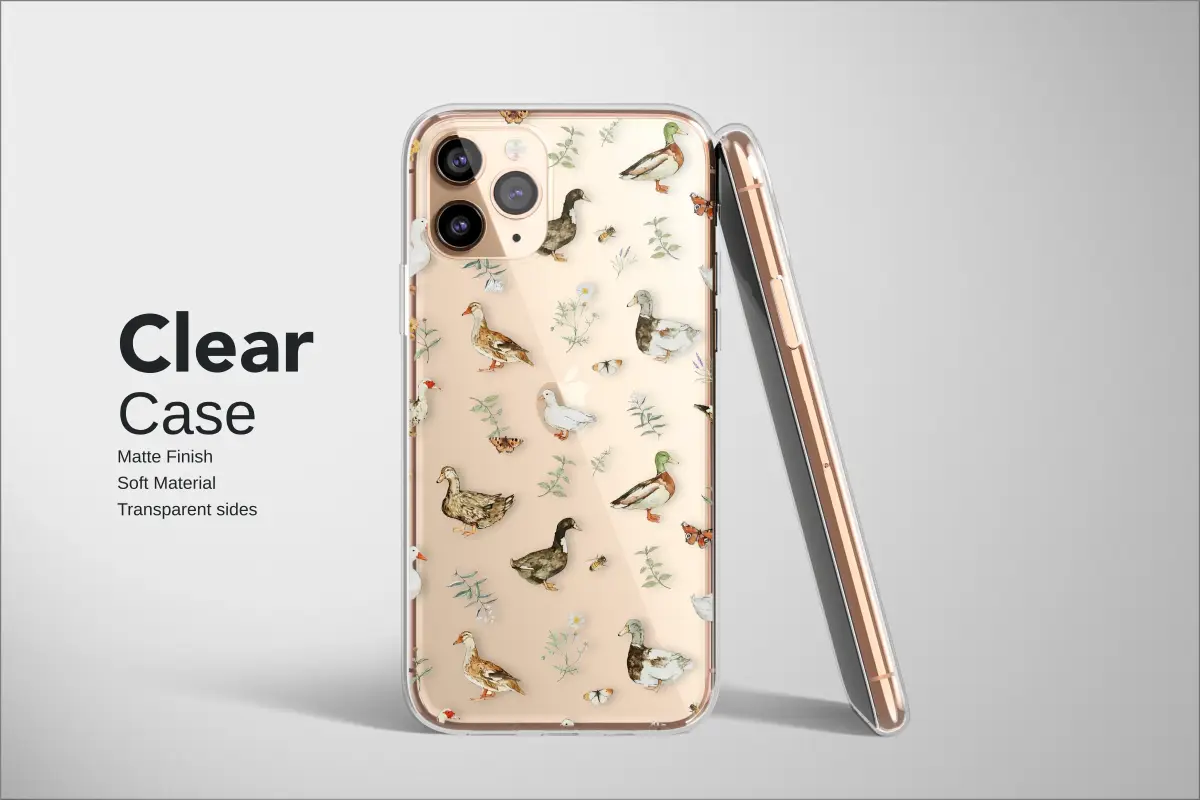 Immerse yourself in the idyllic charm of a countryside meadow with this enchanting and intricate design. This artwork captures the heartwarming essence of a rustic duck pond, rendered in a delicate and timeless watercolor style that evokes the pages of a beloved storybook. Against a sophisticated dark backdrop, a delightful flock of ducks comes to life. You'll spot the vibrant green head of a classic mallard, the pure white feathers of a farm duck, and the unique patterns of various other breeds, each with its own distinct personality. These charming birds meander through a tapestry of hand-painted botanicals and gentle wildlife. Delicate butterflies with intricate wings flutter between sprigs of lavender and wild herbs, while busy little bees dance around cheerful marigolds and delicate white daisies. This pattern is a true celebration of nature's simple elegance and the comforting aesthetic of cottagecore living. It’s the perfect way to carry a piece of pastoral peace with you, transforming your most-used accessory into a statement of rustic sophistication. A thoughtful gift for any animal lover, gardener, or soul who finds joy in the quiet beauty of the natural world, this design brings a touch of whimsical magic to the everyday.