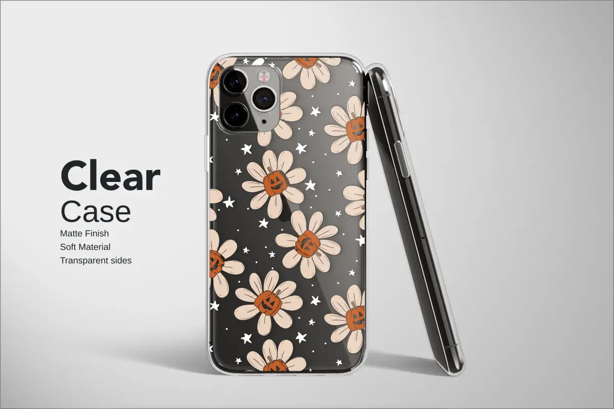 Embrace the enchanting side of spooky season with a design that lets your personal style bloom into the magical autumn night. Imagine mischievous jack-o'-lanterns, glowing with a warm and friendly grin, nestled at the heart of creamy, retro-inspired daisies. These groovy floral specters dance playfully against a deep, velvet-black canvas, like a secret garden that only awakens after dusk. Tiny, hand-drawn stars are scattered throughout, twinkling with a whimsical charm that feels both celestial and cozy. This unique accessory is the perfect way to carry a little piece of autumn magic with you everywhere you go, wrapping your most essential daily companion in a tapestry of spooky-cute nostalgia. It's a statement piece for the modern witch, the boho spirit with a love for all things pumpkin spice, and the fan of groovy 70s aesthetics. Whether you're heading to a pumpkin patch or just want to add a dash of cottagegore charm to your look, this design ensures your tech reflects your enchanting personality. It’s the perfect treat for yourself or a thoughtful gift for the fall fanatic in your life, offering a delightful blend of spooky vibes and floral beauty that lasts all season long.