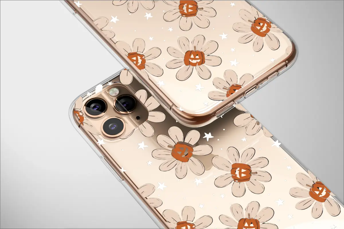 Embrace the enchanting side of spooky season with a design that lets your personal style bloom into the magical autumn night. Imagine mischievous jack-o'-lanterns, glowing with a warm and friendly grin, nestled at the heart of creamy, retro-inspired daisies. These groovy floral specters dance playfully against a deep, velvet-black canvas, like a secret garden that only awakens after dusk. Tiny, hand-drawn stars are scattered throughout, twinkling with a whimsical charm that feels both celestial and cozy. This unique accessory is the perfect way to carry a little piece of autumn magic with you everywhere you go, wrapping your most essential daily companion in a tapestry of spooky-cute nostalgia. It's a statement piece for the modern witch, the boho spirit with a love for all things pumpkin spice, and the fan of groovy 70s aesthetics. Whether you're heading to a pumpkin patch or just want to add a dash of cottagegore charm to your look, this design ensures your tech reflects your enchanting personality. It’s the perfect treat for yourself or a thoughtful gift for the fall fanatic in your life, offering a delightful blend of spooky vibes and floral beauty that lasts all season long.