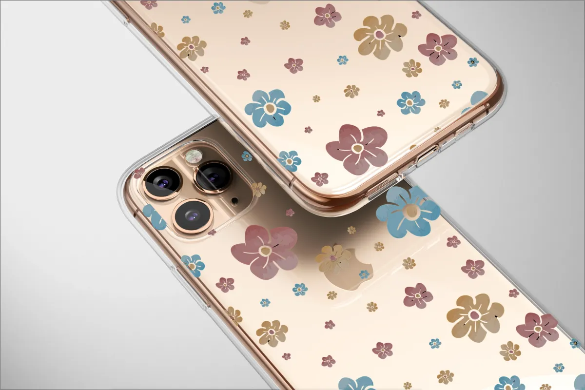 Step into a whimsical world where nature meets digital art with this captivating design. Against a deep, velvety black canvas, a constellation of abstract flowers floats in a charming dance. Each bloom, rendered in a palette of dusty rose, serene sky blue, and warm ochre, possesses a unique, slightly pixelated texture that gives it a charming retro-tech feel. Thin, delicate lines streak across the design like digital threads, connecting the blossoms and adding a layer of modern intrigue. This isn't just a pattern; it's a dreamscape, a midnight garden viewed through a vintage computer screen. The design blends a Y2K aesthetic with timeless botanical beauty, creating a look that is both nostalgic and refreshingly contemporary. Perfect for the dreamer or anyone who loves a touch of dark floral elegance with a quirky twist, this artwork allows you to carry a secret garden with you. It makes an ideal gift for her, a friend, or a lovely treat for yourself, transforming your everyday essentials into a statement of unique, artistic flair.