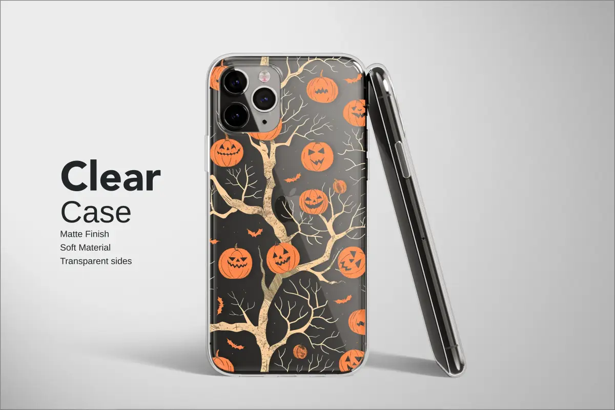 Step into a moonless night where the spirit of Halloween comes alive in a beautifully haunting display. Bare, twisting branches of an ancient tree reach into the inky black sky, each one offering a glowing jack-o'-lantern with its own mischievous grin. This isn't just a design; it's a portal to a whimsical, haunted forest where autumn magic is real and the air is crisp with spooky delight. Rendered in a charmingly retro, pixelated style, this artwork adds a touch of nostalgic video game flair to its inherent gothic charm, making it a unique piece of digital art. Tiny orange bats flutter between the branches, adding to the playful spookiness of the scene and creating a captivating pattern that's both eerie and enchanting. Carry a piece of the coziest, most bewitching season with you wherever you go. This unique pattern is perfect for anyone who adores a dark academia aesthetic, loves cottagegore or witchy vibes, and counts down the days until October. It’s an ideal accessory to showcase your love for all things autumnal and eerie, making every day feel like a trip to your favorite pumpkin patch. A perfect and thoughtful gift for the Halloween enthusiast or lover of all things macabre in your life, this design wraps your daily essentials in the timeless magic of a crisp All Hallows' Eve.