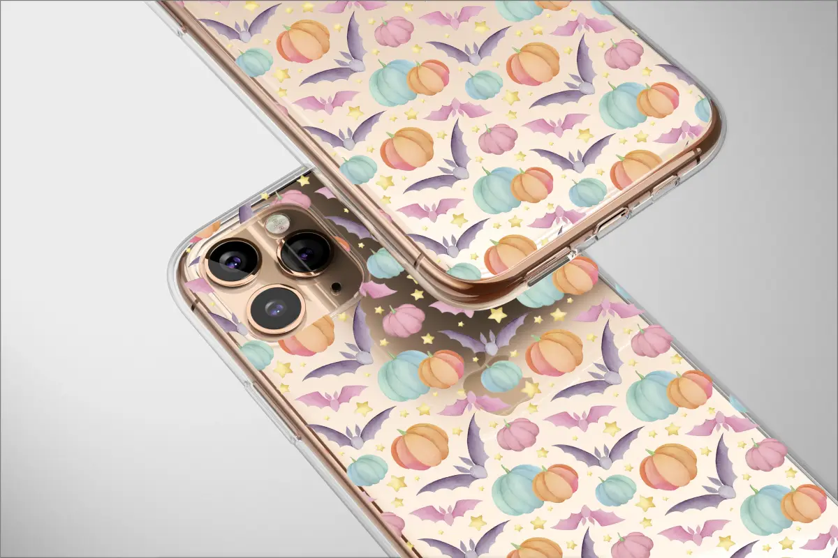 Embrace the magic of the spooky season with a touch of whimsical charm. This enchanting design captures the heart of a dreamy autumn night, where a celestial pumpkin patch comes to life under a starlit sky. Soft, watercolor pumpkins in pastel shades of dusty rose, gentle orange, and cool teal float against a deep midnight canvas, creating a unique and modern take on classic fall aesthetics. Playful bats, painted in muted purples and pinks, dance between twinkling golden stars, adding a sweet yet spooky feel to the scene. This isn't just a pattern; it's a feeling—the crisp air of an October evening, the quiet flutter of wings, and the soft glow of a magical harvest. Perfect for anyone who adores the pastel goth look or wants to celebrate Halloween with a sophisticated, artistic flair. Let this beautiful artwork adorn your favorite accessory, adding a pop of seasonal personality and keeping the enchanting spirit of autumn with you wherever you go. It's the ideal way to showcase your love for all things cute and creepy, making it a wonderful treat for yourself or a thoughtful gift for a fellow fall enthusiast.