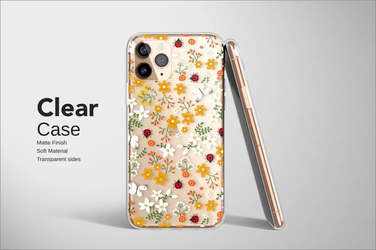 Immerse yourself in the enchanting allure of a secret garden that comes alive at midnight. This captivating design is a portal to a whimsical world, meticulously crafted to bring a touch of botanical magic to your daily life. Against a sophisticated, deep black background, a vibrant tapestry of nature unfolds. Sunny orange and marigold blossoms pop with cheerful energy, interspersed with the pure, star-like beauty of white narcissus flowers. Delicate white butterflies, their wings detailed with subtle grace, seem to flutter between the stems, adding a sense of movement and life to the scene. Look closer, and you’ll discover charming little ladybugs, like tiny scarlet jewels, bringing a promise of luck and delight. The folk-art-inspired illustration, with its charming, slightly pixelated lines, evokes a sense of handmade warmth and storybook nostalgia. This dark floral pattern is perfect for the cottagecore enthusiast, the lover of all things botanical, and anyone who appreciates art that tells a story. Elevate your personal style with this unique accessory, a constant and beautiful reminder of a hidden meadow where wildflowers and friendly critters dance under the moonlight. It's the perfect, thoughtful gift for the nature lover in your life, or a wonderful way to carry a piece of whimsical art with you every single day.