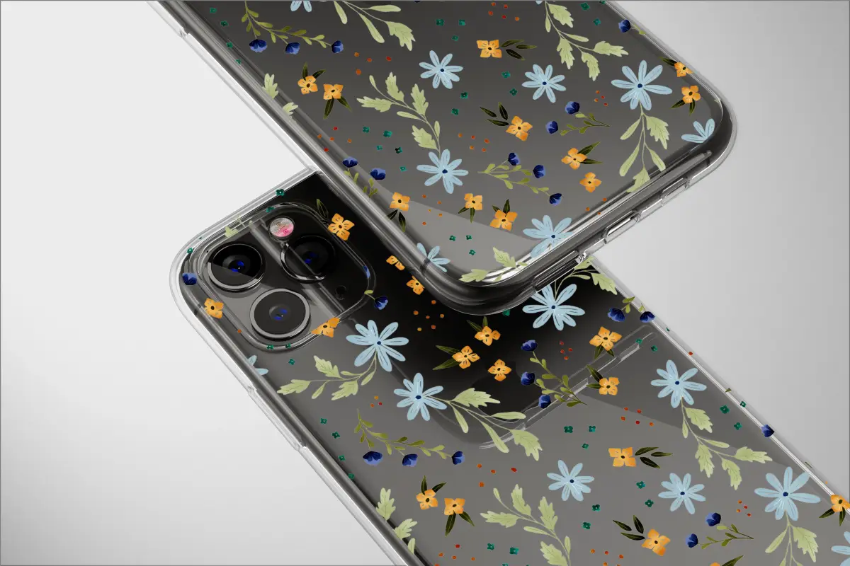Step into a whimsical midnight garden, where mystery and magic bloom in the quiet of the night. This captivating artwork captures a secret meadow, brought to life against a deep, dark canvas that makes every color pop with intensity. Imagine delicate wildflowers, from serene light blue asters to cheerful golden buttercups and mysterious deep indigo buds, scattered as if by a gentle breeze. Each element is rendered with a charming, painterly quality that feels both timeless and personal. Sage green foliage winds gracefully throughout the design, connecting the disparate blossoms into a harmonious botanical tapestry. Faint, abstract lines and tiny colorful specks are sprinkled throughout, adding a touch of modern, digital artistry to this classic nature-inspired scene. This isn't just a design; it's an escape into a dreamy, cottagecore world. It’s the perfect way to infuse your daily life with a dose of artistic elegance and natural wonder, making your most-used accessory a true statement piece. A beautiful and unique gift for the creative soul in your life.