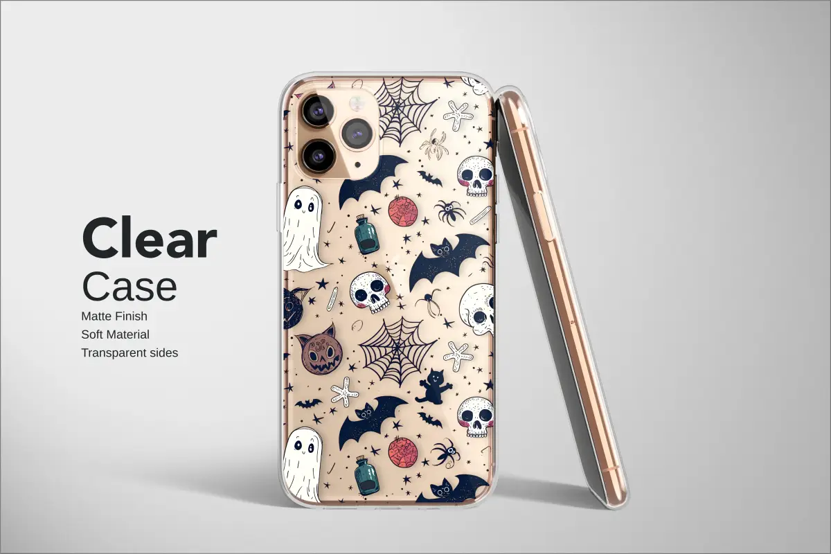 Embrace the enchanting spirit of All Hallows' Eve with this captivating, hand-drawn design that brings a touch of whimsical mischief to your everyday. Set against a deep, starry night sky, a delightful troupe of spooky friends comes out to play. Friendly ghosts drift with cheerful smiles, while comically cute skulls and mischievous bats flutter among intricate spiderwebs and jack-o'-lantern cats. Every detail in this busy pattern, from tiny potion bottles to celestial stars, is designed to evoke the cozy, nostalgic feeling of a perfect autumn night. The unique, slightly distressed art style gives it a vintage, storybook feel, making it a standout piece of wearable art. This isn't just a design; it's a celebration of the playful side of the macabre, perfect for anyone with a witchy aesthetic or a love for cute gothic charm. Let this charming pattern protect your most essential device, wrapping it in a visual story that captures the magical energy of the spooky season. It's the ideal way to accessorize for autumn or to keep the Halloween spirit alive all year long, making it a perfect gift for the spooky soul in your life.