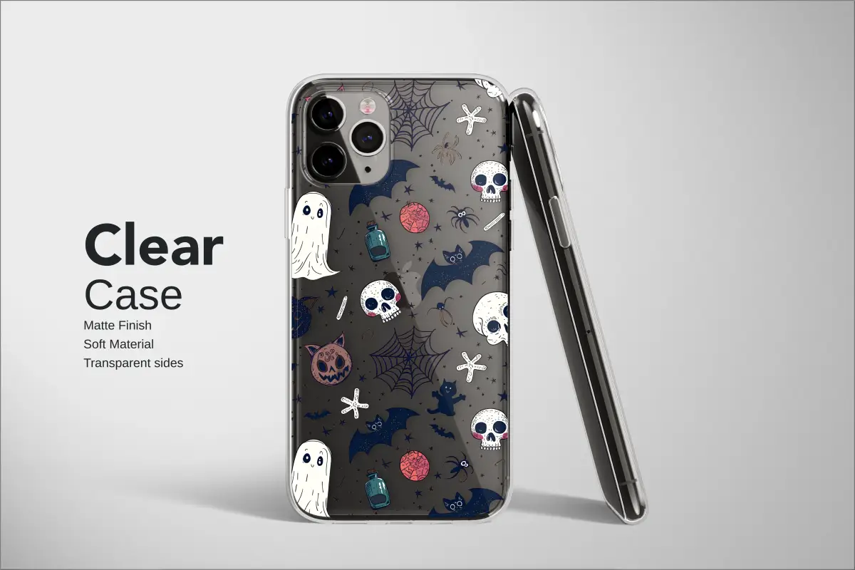 Embrace the enchanting spirit of All Hallows' Eve with this captivating, hand-drawn design that brings a touch of whimsical mischief to your everyday. Set against a deep, starry night sky, a delightful troupe of spooky friends comes out to play. Friendly ghosts drift with cheerful smiles, while comically cute skulls and mischievous bats flutter among intricate spiderwebs and jack-o'-lantern cats. Every detail in this busy pattern, from tiny potion bottles to celestial stars, is designed to evoke the cozy, nostalgic feeling of a perfect autumn night. The unique, slightly distressed art style gives it a vintage, storybook feel, making it a standout piece of wearable art. This isn't just a design; it's a celebration of the playful side of the macabre, perfect for anyone with a witchy aesthetic or a love for cute gothic charm. Let this charming pattern protect your most essential device, wrapping it in a visual story that captures the magical energy of the spooky season. It's the ideal way to accessorize for autumn or to keep the Halloween spirit alive all year long, making it a perfect gift for the spooky soul in your life.