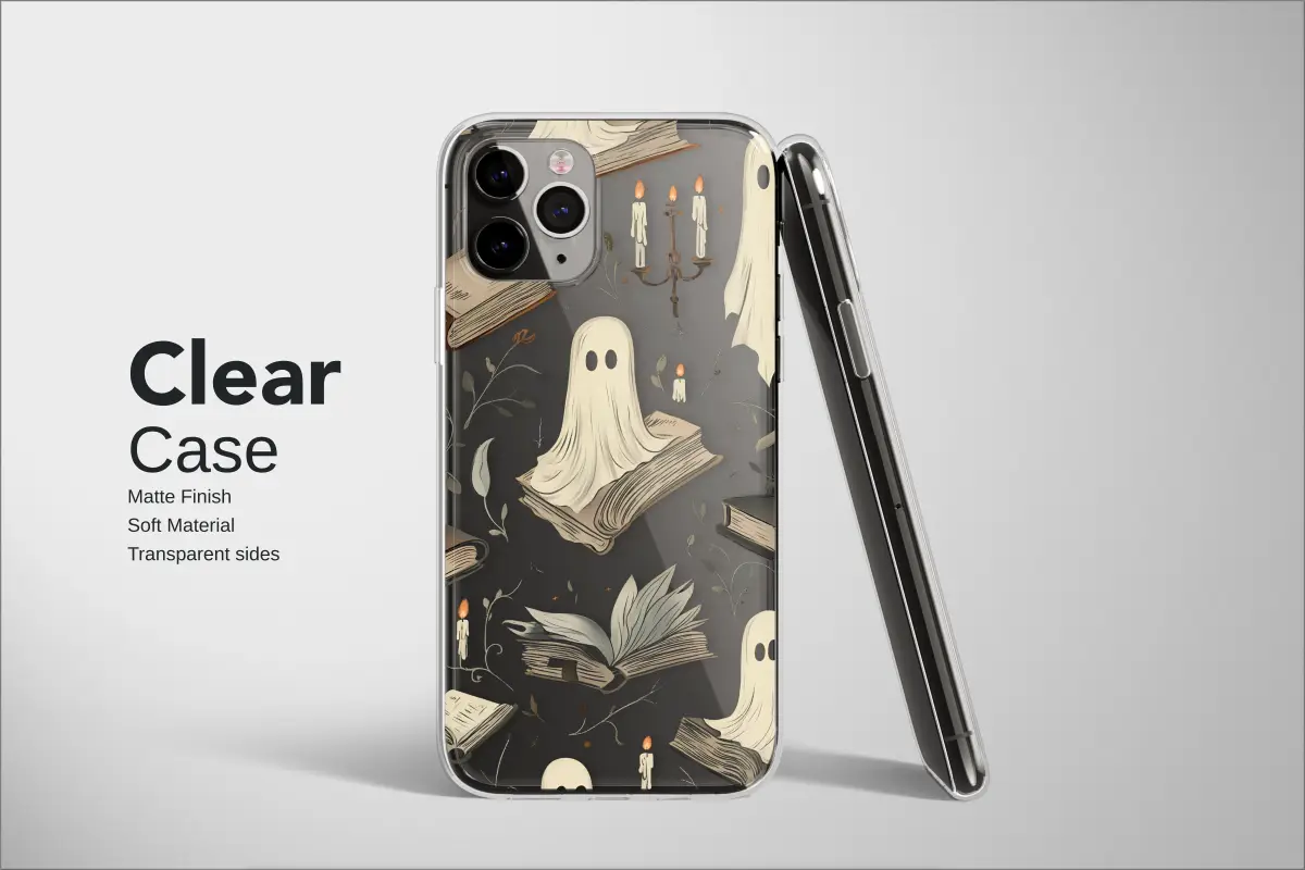Immerse yourself in the enchanting quiet of a midnight library, a secret study where stories truly come alive after dark. This captivating design invites you into a whimsical world whispered on aged parchment, illuminated only by the soft, flickering glow of ancient candelabras. Here, friendly spectral figures drift weightlessly among towering shelves, their ethereal forms draped over dusty tomes and forgotten lore, completely lost in tales from another time. Every glance reveals a new, charming secret: a weathered leather-bound book with gilded edges, the delicate curl of a ghostly sheet, or the intricate dance of shadows cast by warm candlelight. This whimsical gothic pattern perfectly captures the cozy-spooky essence of a haunted sanctuary, making it a dream for any book lover with a love for the paranormal and dark academia aesthetics. The rich, dark backdrop makes the vintage illustrations pop, creating a stunning visual tapestry of literary magic and gentle hauntings. Carry this beautiful piece of ethereal art with you and let it serve as a constant, stylish reminder of the magic found within the pages of a good book—even those read by the most charming of ghosts. It’s an invitation to a story that never ends, a perfect accessory for the modern romantic with a gothic soul.