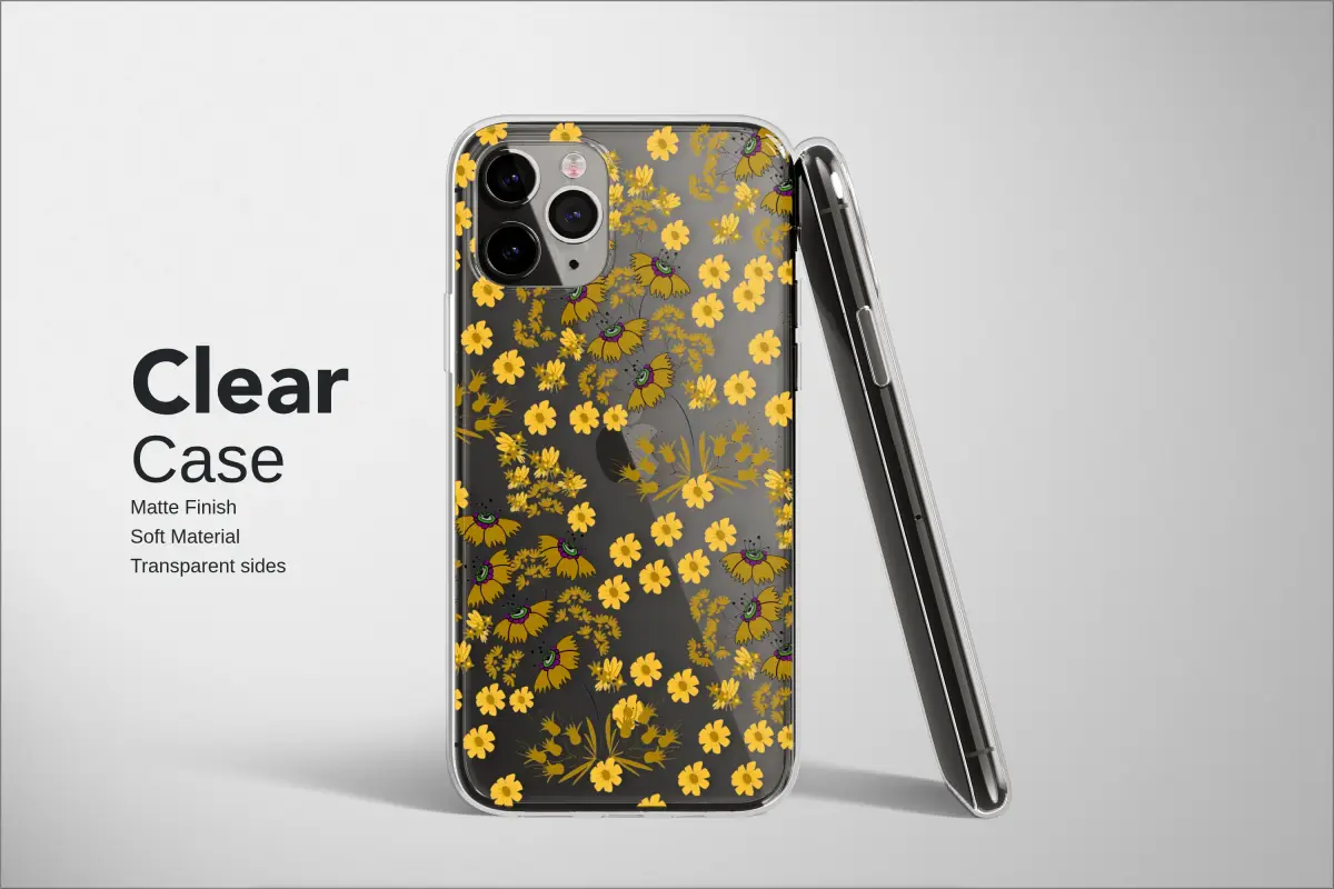 Wrap your most essential tech in a sun-drenched meadow with our enchanting 'Golden Wildflower' design, the perfect aesthetic accessory for the modern romantic and retro soul. This isn't just a simple cover; it’s a wearable piece of art that infuses your day with cheerful, botanical energy. A whimsical cascade of hand-drawn yellow florals dances across a crystal-clear backdrop, allowing the original, beautiful color of your device to shine through and become part of the design itself. You’ll love discovering the details in each unique bloom—from groovy, 70s-inspired flowers with jagged mustard-yellow petals and charming olive-green centers, to sweet, simple daisies that evoke the feeling of carefree summer afternoons. This delightful botanical pattern is a dream for anyone who adores a boho vibe, cottagecore aesthetics, or simply wants to carry a little piece of sunshine. Crafted to be more than just beautiful, this durable yet slim protective sleeve provides a confident grip and guards your essential companion against the inevitable scuffs and scratches of daily life, all while maintaining a sleek, barely-there feel. It’s the perfect unique gift for her, a thoughtful present for a best friend, or a lovely treat for yourself. Let this floral art transform your most-used gadget into a statement of your vibrant, nature-loving personality and keep the good vibes flowing all day long.
