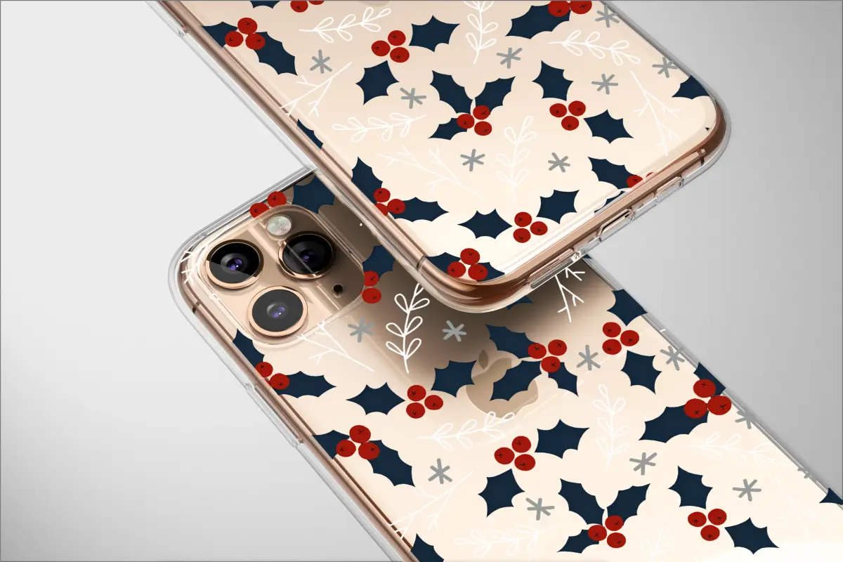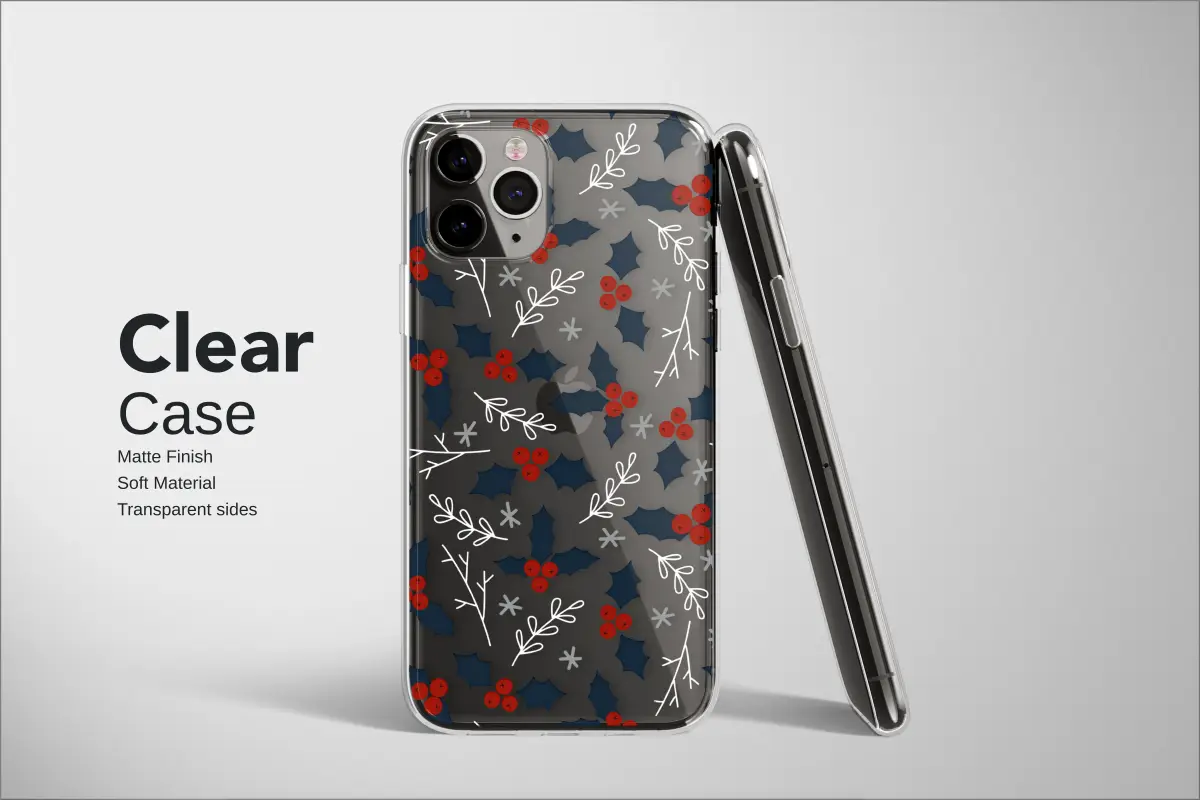 Wrap your world in the quiet magic of a starlit winter's night with this captivating botanical design. Picture a deep, endless midnight sky, a perfect canvas for the timeless beauty of the season. Deep navy holly leaves, rendered with a touch of rustic charm, dance across the surface, their iconic shapes a classic symbol of yuletide cheer. Nestled amongst them are clusters of vibrant crimson berries, their bold color popping like joyful notes in a silent, snowy landscape. These festive red accents are perfectly complemented by delicate, frosty white twigs that seem to glitter with ice, and whimsical grey stars scattered like the first flurries of a gentle snowfall. This enchanting artwork isn't just a pattern; it’s a feeling. It’s the cozy warmth of a fireside chat, the crisp air of a winter walk, the nostalgic joy of the holidays. Designed to adorn your most essential accessory, it transforms an everyday object into a statement of festive elegance and personal style. It provides a touch of nature-inspired sophistication, ensuring your device is not only protected but also beautifully reflects the most wonderful time of the year. Carry this piece of winter enchantment with you and let its subtle, artistic charm bring a little holiday spirit to every moment.