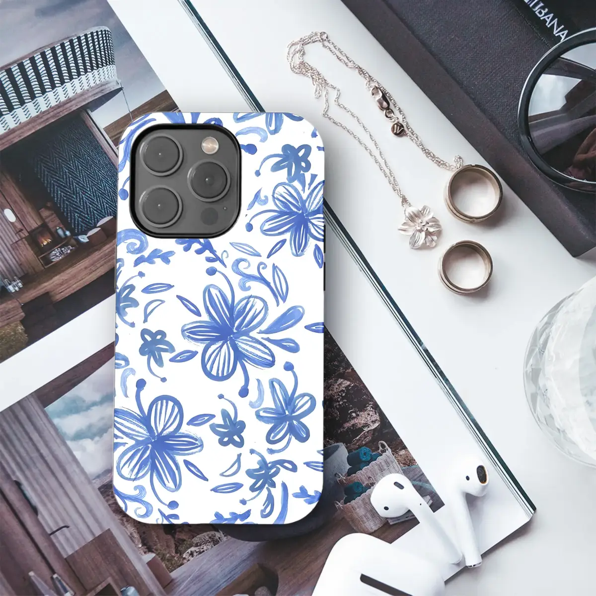 Wrap your favorite accessory in the serene beauty of a hand-painted garden. This stunning design captures a whimsical dance of cobalt blue florals and swirling indigo vines, all set against a pristine white background. Each bloom is rendered with expressive, watercolor-like brushstrokes, revealing a charmingly imperfect and organic quality that speaks to its artistic origins. The pattern evokes the timeless elegance of classic delftware pottery and the breezy feel of a Mediterranean summer, making it a sophisticated piece of wearable art. This botanical illustration is a perfect blend of minimalist design and cottagecore romance, ideal for anyone who cherishes artisanal craftsmanship and nature-inspired aesthetics. Let this azure dreamscape elevate your daily style, adding a touch of serene elegance and creative flair to your most essential item. It's not just a pattern; it's a conversation starter, a small piece of art that brings joy and beauty to your day. This lovely blue and white floral design makes a thoughtful and unique gift for her, a friend, or anyone who appreciates the delicate fusion of modern art and classic charm. Carry a piece of this tranquil indigo garden with you wherever you go and let your style bloom.