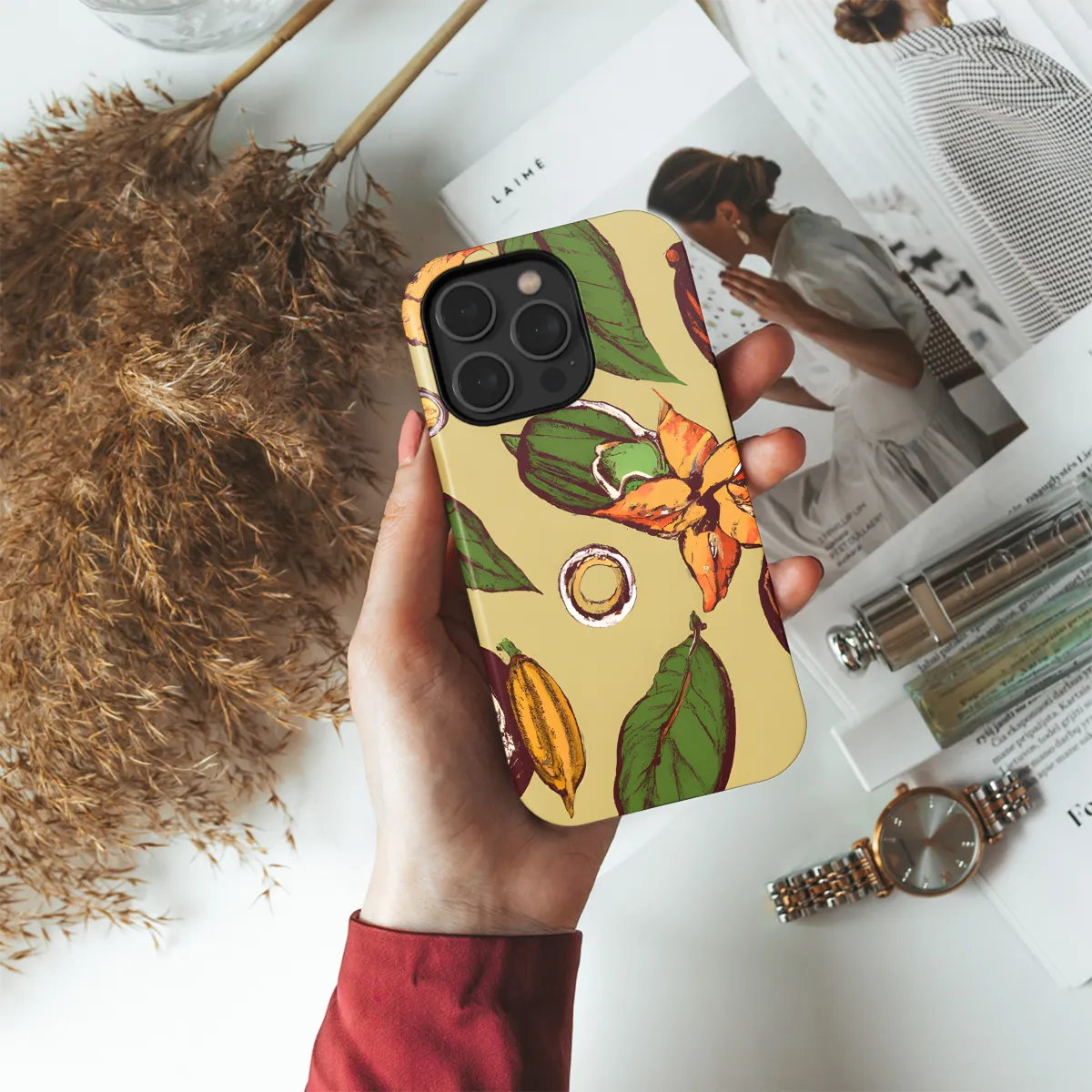 Shield your phone in style with our exclusive Cocoa Phone Case. Designed to fit iPhone, Samsung, and Pixel, this case offers a sophisticated touch to your daily device. Its sleek silhouette and rich cocoa hue elevate your phone's appearance, while the durable construction ensures optimal protection against bumps, scratches, and everyday wear. Experience both elegance and security with our Cocoa Phone Case.