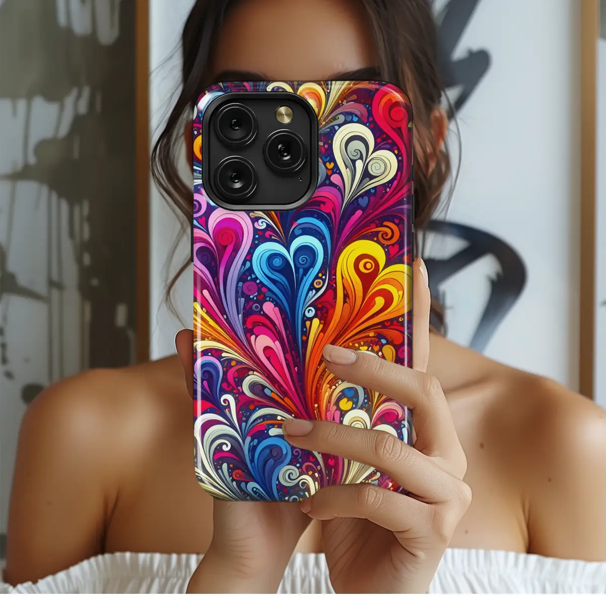 Experience the vibrant symphony of colors with our abstract spray swirl hearts phone case. The mesmerizing blend of hues adorns your device with an enchanting touch. Each swirl and heart intertwine, creating a captivating spectacle that will turn heads wherever you go. Whether you're an iPhone, Samsung, or Pixel enthusiast, our case ensures a perfect fit, safeguarding your phone from bumps and scratches while adding a burst of artistic flair. Embrace the kaleidoscope of colors and embrace the beauty of abstract art with our exceptional phone cover.