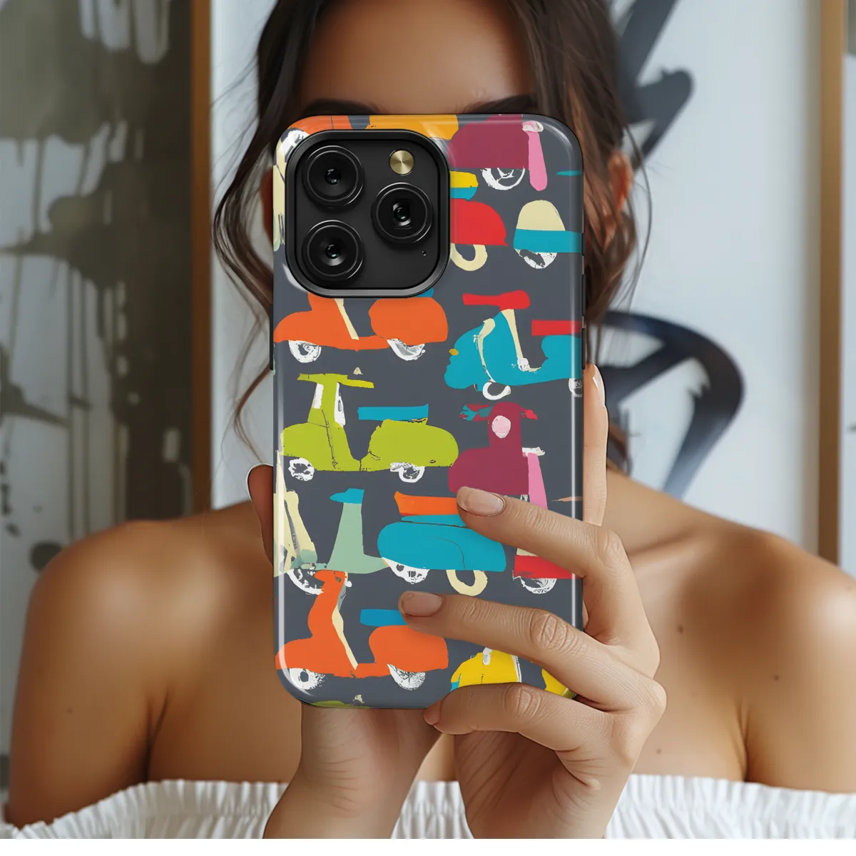 Roll into style with our groovy scooter phone case! Featuring vibrant colors and a dash of retro charm, this case will transform your phone into a mobile masterpiece. Safeguard your device from drops and dings while adding a splash of fun and individuality to your everyday adventures. Available for a wide range of iPhone, Samsung, and Pixel models, this case is the perfect accessory to keep your tech safe and stylish. Buckle up and let the scooter ride begin!
