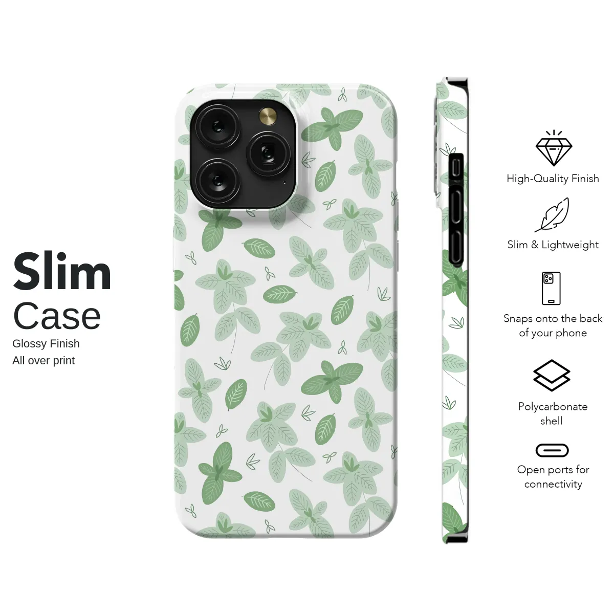 Breathe in the cool, crisp air of a dew-kissed morning garden with this enchanting botanical design. A delicate dance of fresh spearmint and peppermint leaves tumbles across a clean, white canvas, creating a sense of serene yet vibrant energy that feels both calming and invigorating. Lush shades of soft sage and deep forest green mingle together, rendered in a charmingly modern, minimalist style that celebrates the simple beauty of a flourishing herb garden. Look closer and you'll find tiny, hand-drawn leaf sprites scattered throughout, adding a touch of whimsical magic to the elegant herbal pattern. This design is more than just an artwork; it's a small escape, a whisper of peace to carry with you. Perfect for the plant lover, the nature enthusiast, or anyone who appreciates a clean, organic aesthetic, this verdant pattern infuses your daily carry with a breath of fresh air. It transforms your device into a statement of calm and natural elegance, making it a thoughtful gift for a loved one or a beautiful way to treat yourself to a little piece of a peaceful sanctuary.