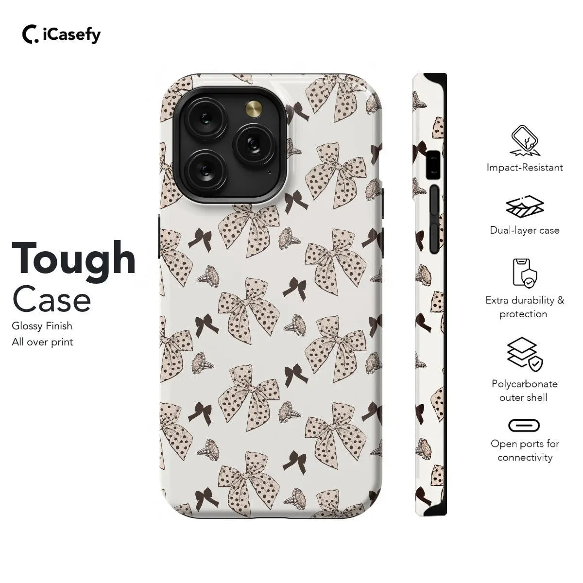 Elevate your phone's style with our Coquette Bow Elegant Dot Phone Case. Featuring a sophisticated design of delicate bows and elegant dots, this case exudes timeless chic. Crafted for both style and protection, it safeguards your phone while adding a touch of refined charm. With precise cutouts for ports and buttons, it ensures seamless functionality. Make a statement of understated elegance with our Coquette Bow Elegant Dot Phone Case today!