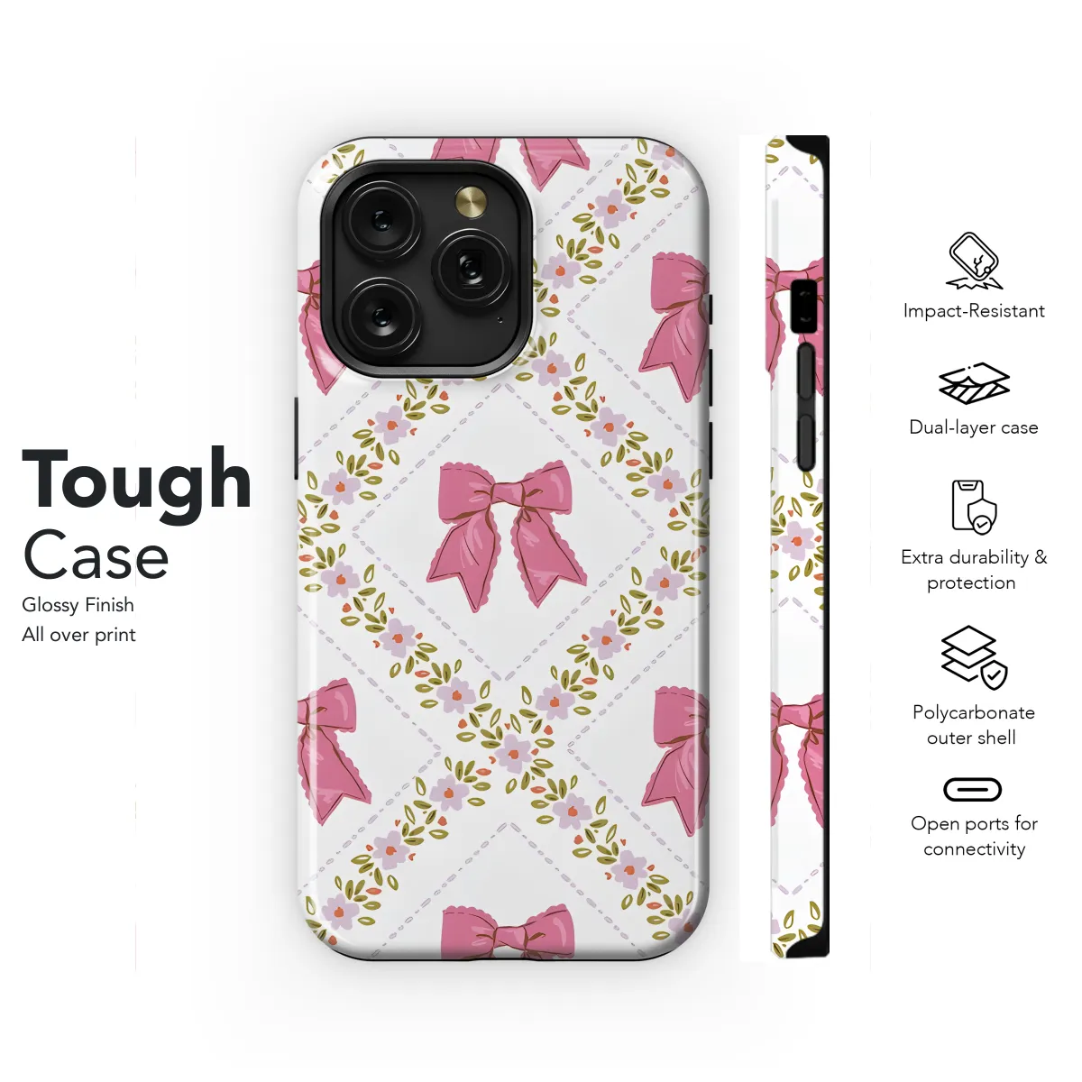 **Embrace the allure of Coquette with this captivating phone case!** Adorned with a seamless pattern of delicate bows, this case exudes an enchanting feminine charm. Its sleek design complements the contours of your iPhone, Samsung, or Pixel perfectly, seamlessly protecting your device while adding a touch of whimsy. Embrace the spirit of Coquette, where allure and playfulness intertwine. This phone case is the perfect accessory for the modern woman who seeks a balance of elegance and mischief.