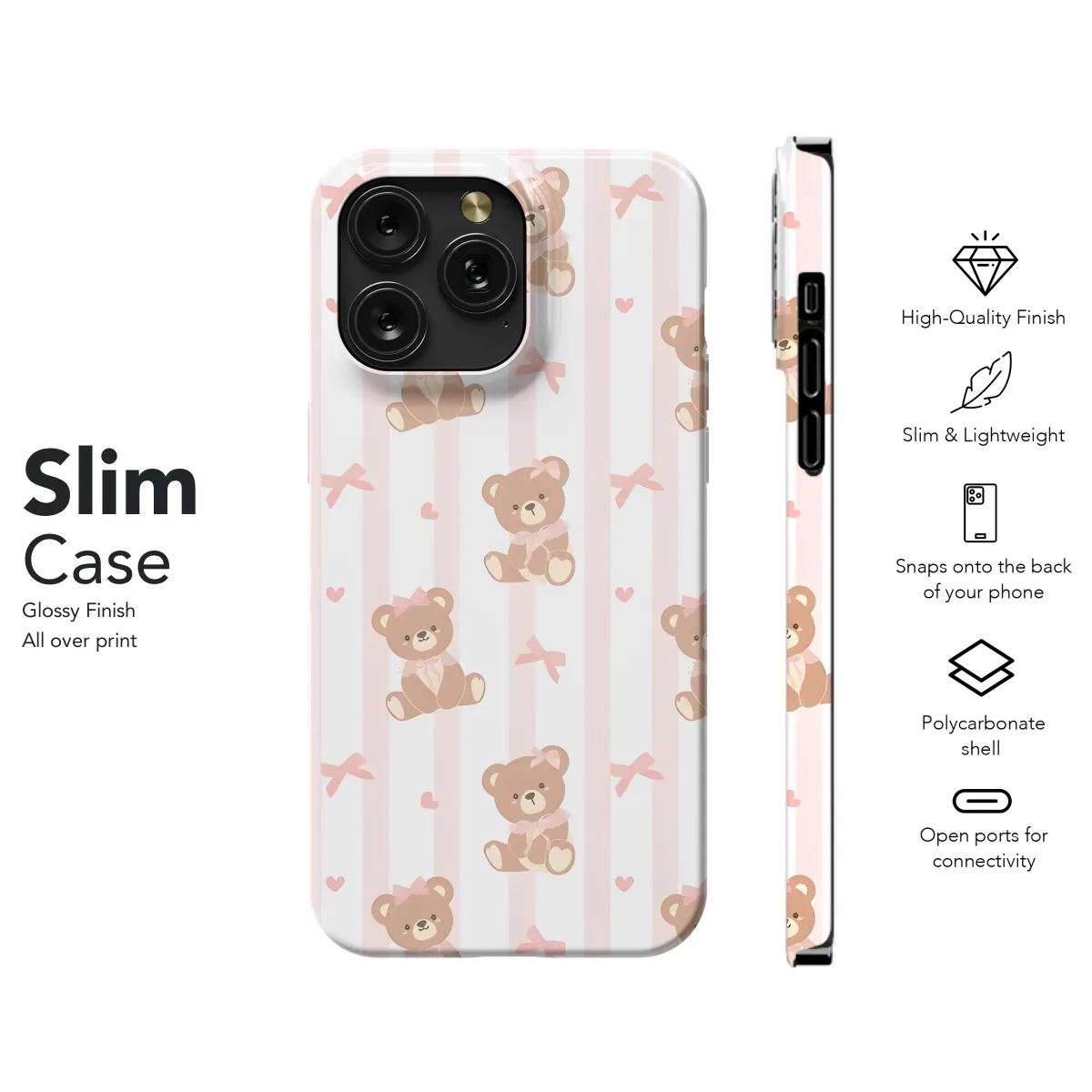Indulge in the captivating charm of this Coquette Teddy Bear Phone Case, a playful accessory designed to protect your precious device with a touch of whimsical flair. Adorned with an adorable teddy bear adorned in a delicate floral print, this case exudes a playful yet sophisticated appeal. Its durable materials provide reliable protection from scratches and everyday wear, while its snug fit ensures a secure hold. Compatible with a wide range of iPhone, Samsung, and Pixel models, this case is the perfect blend of style and functionality. Embrace the whimsical charm of the Coquette Teddy Bear Phone Case and let your device become an extension of your playful spirit.