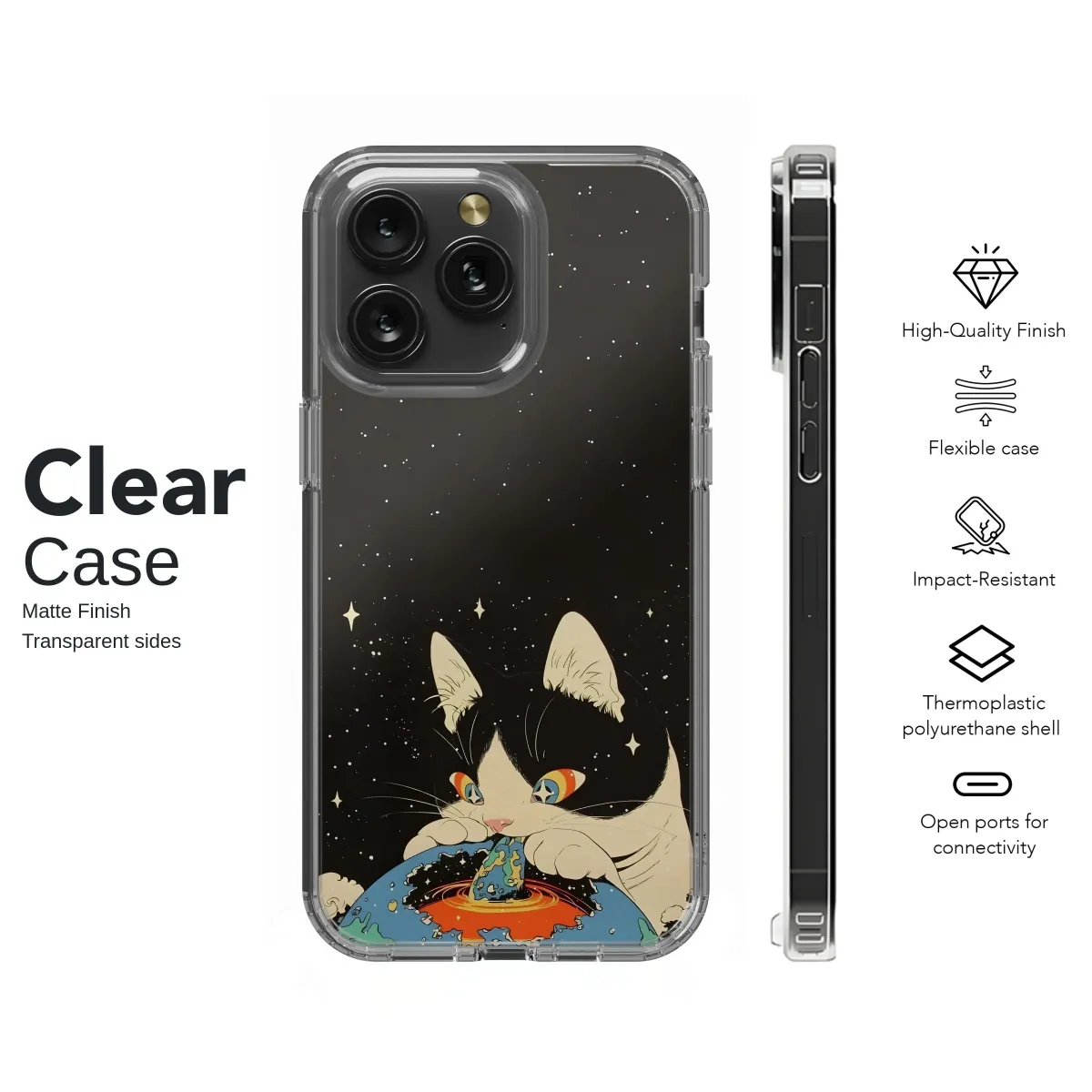 Embrace the cosmic cuteness with this captivating design featuring a whimsical feline playfully interacting with a vibrant planet against a starry backdrop. This unique artwork boasts a retro-inspired aesthetic, blending bold colors and playful lines to create a truly eye-catching piece. Perfect for adding a touch of quirky charm and celestial wonder to your everyday carry, this design is a must-have for cat lovers and space enthusiasts alike. The high-quality print ensures vibrant colors and long-lasting durability, making it a stylish and practical addition to your personal collection. This artistic statement piece is sure to spark conversations and turn heads wherever you go, making it a perfect gift for the creative individual in your life or a special treat for yourself. Stand out from the crowd with this imaginative and unforgettable design, showcasing your unique style and love for all things quirky and cosmic. The intricate details and bold color palette make this a truly unique and memorable accessory, ready to elevate your personal style to another dimension. Shop now and unleash your inner space explorer!