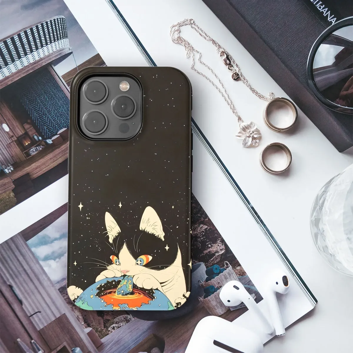 Embrace the cosmic cuteness with this captivating design featuring a whimsical feline playfully interacting with a vibrant planet against a starry backdrop. This unique artwork boasts a retro-inspired aesthetic, blending bold colors and playful lines to create a truly eye-catching piece. Perfect for adding a touch of quirky charm and celestial wonder to your everyday carry, this design is a must-have for cat lovers and space enthusiasts alike. The high-quality print ensures vibrant colors and long-lasting durability, making it a stylish and practical addition to your personal collection. This artistic statement piece is sure to spark conversations and turn heads wherever you go, making it a perfect gift for the creative individual in your life or a special treat for yourself. Stand out from the crowd with this imaginative and unforgettable design, showcasing your unique style and love for all things quirky and cosmic. The intricate details and bold color palette make this a truly unique and memorable accessory, ready to elevate your personal style to another dimension. Shop now and unleash your inner space explorer!