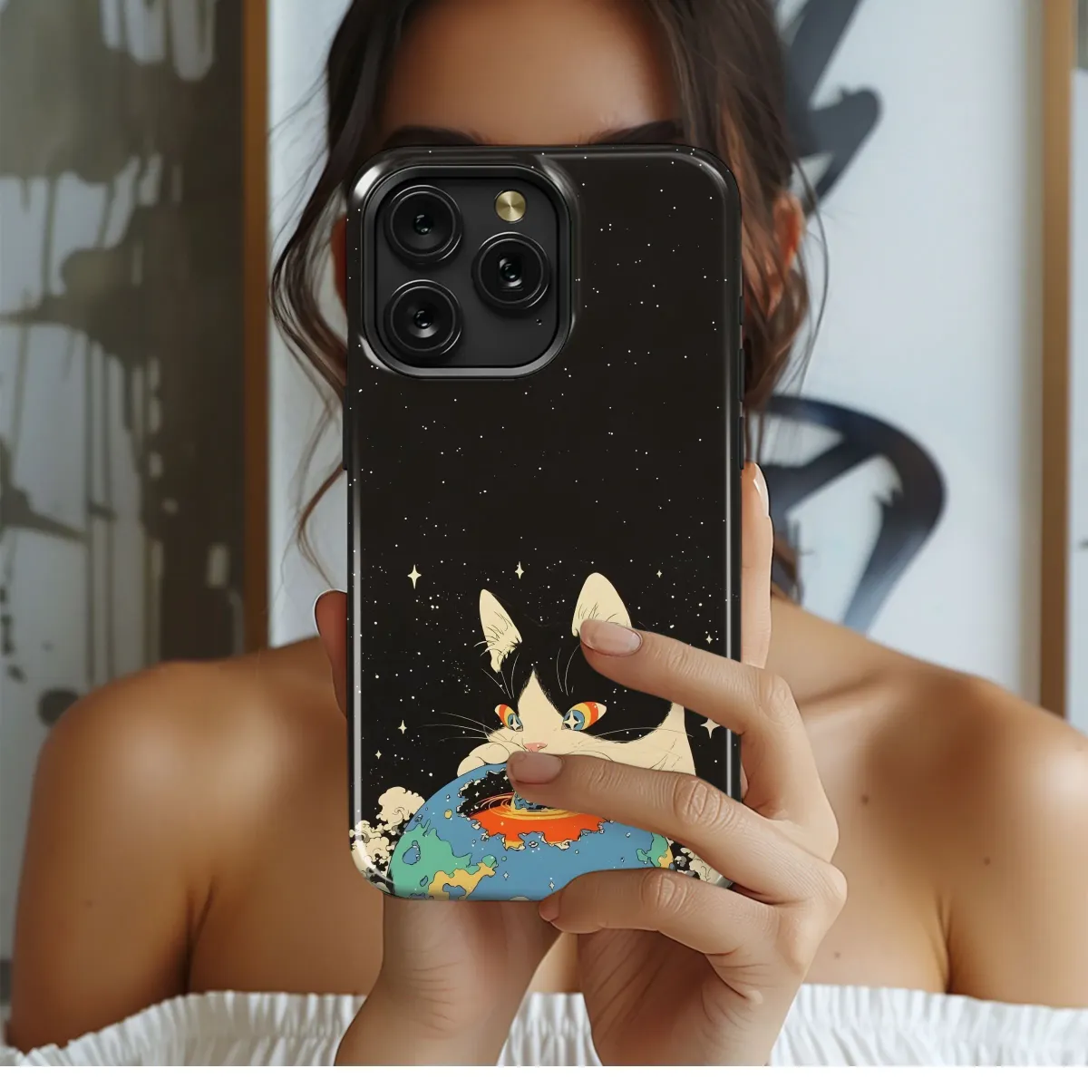 Embrace the cosmic cuteness with this captivating design featuring a whimsical feline playfully interacting with a vibrant planet against a starry backdrop. This unique artwork boasts a retro-inspired aesthetic, blending bold colors and playful lines to create a truly eye-catching piece. Perfect for adding a touch of quirky charm and celestial wonder to your everyday carry, this design is a must-have for cat lovers and space enthusiasts alike. The high-quality print ensures vibrant colors and long-lasting durability, making it a stylish and practical addition to your personal collection. This artistic statement piece is sure to spark conversations and turn heads wherever you go, making it a perfect gift for the creative individual in your life or a special treat for yourself. Stand out from the crowd with this imaginative and unforgettable design, showcasing your unique style and love for all things quirky and cosmic. The intricate details and bold color palette make this a truly unique and memorable accessory, ready to elevate your personal style to another dimension. Shop now and unleash your inner space explorer!