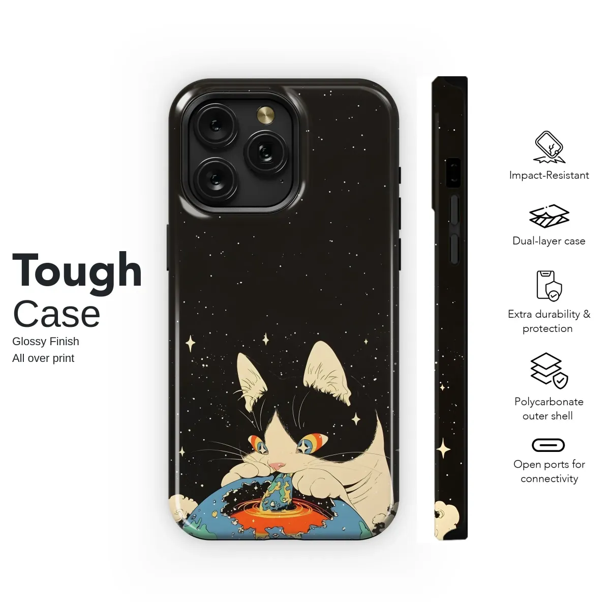 Embrace the cosmic cuteness with this captivating design featuring a whimsical feline playfully interacting with a vibrant planet against a starry backdrop. This unique artwork boasts a retro-inspired aesthetic, blending bold colors and playful lines to create a truly eye-catching piece. Perfect for adding a touch of quirky charm and celestial wonder to your everyday carry, this design is a must-have for cat lovers and space enthusiasts alike. The high-quality print ensures vibrant colors and long-lasting durability, making it a stylish and practical addition to your personal collection. This artistic statement piece is sure to spark conversations and turn heads wherever you go, making it a perfect gift for the creative individual in your life or a special treat for yourself. Stand out from the crowd with this imaginative and unforgettable design, showcasing your unique style and love for all things quirky and cosmic. The intricate details and bold color palette make this a truly unique and memorable accessory, ready to elevate your personal style to another dimension. Shop now and unleash your inner space explorer!