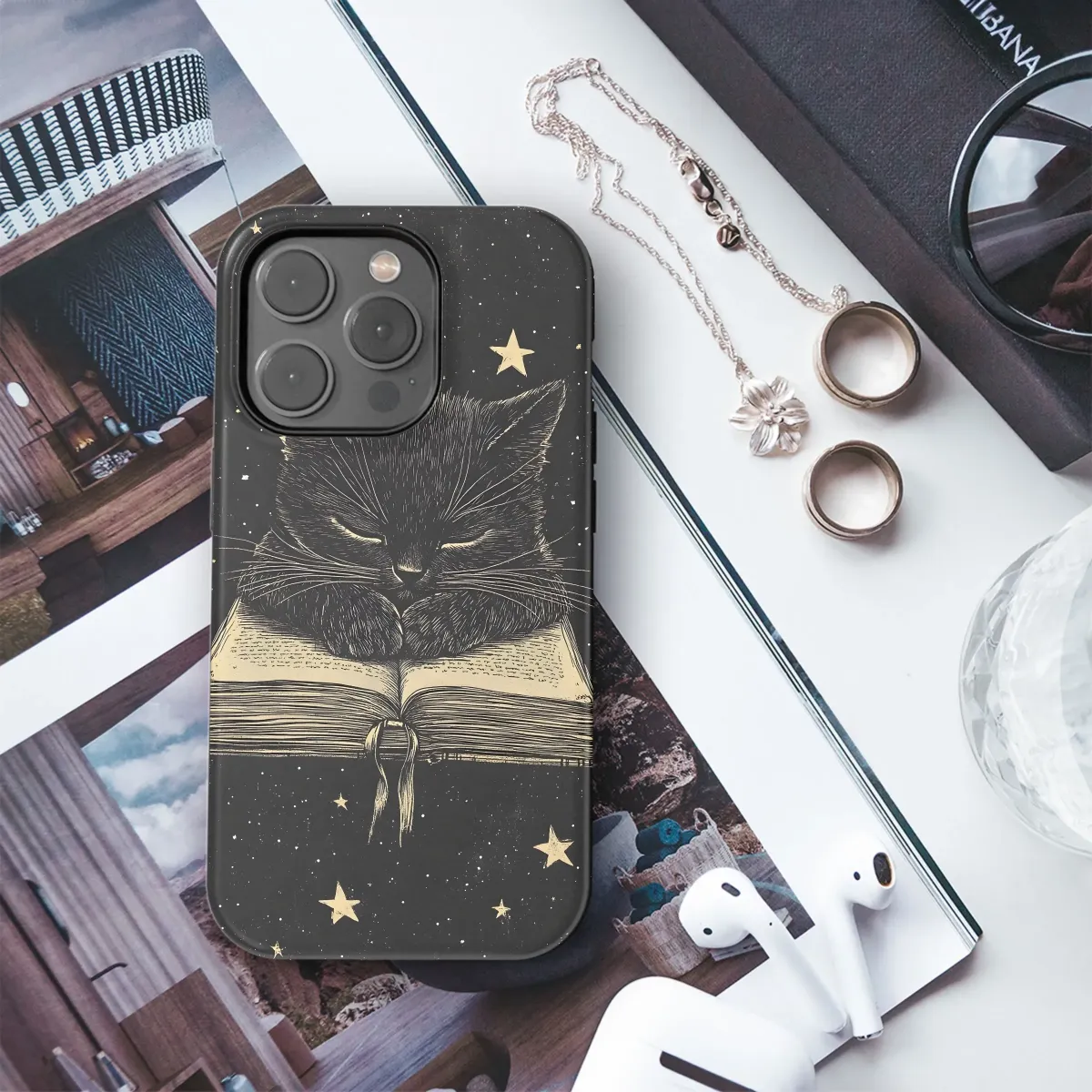 Reach for the stars with the Cosmic Cat Reader Phone Case! This purrfectly unique design featuring a celestial feline engrossed in a good book is available for iPhone, Samsung, and Pixel models. Get yours now and protect your phone with a touch of cosmic charm!